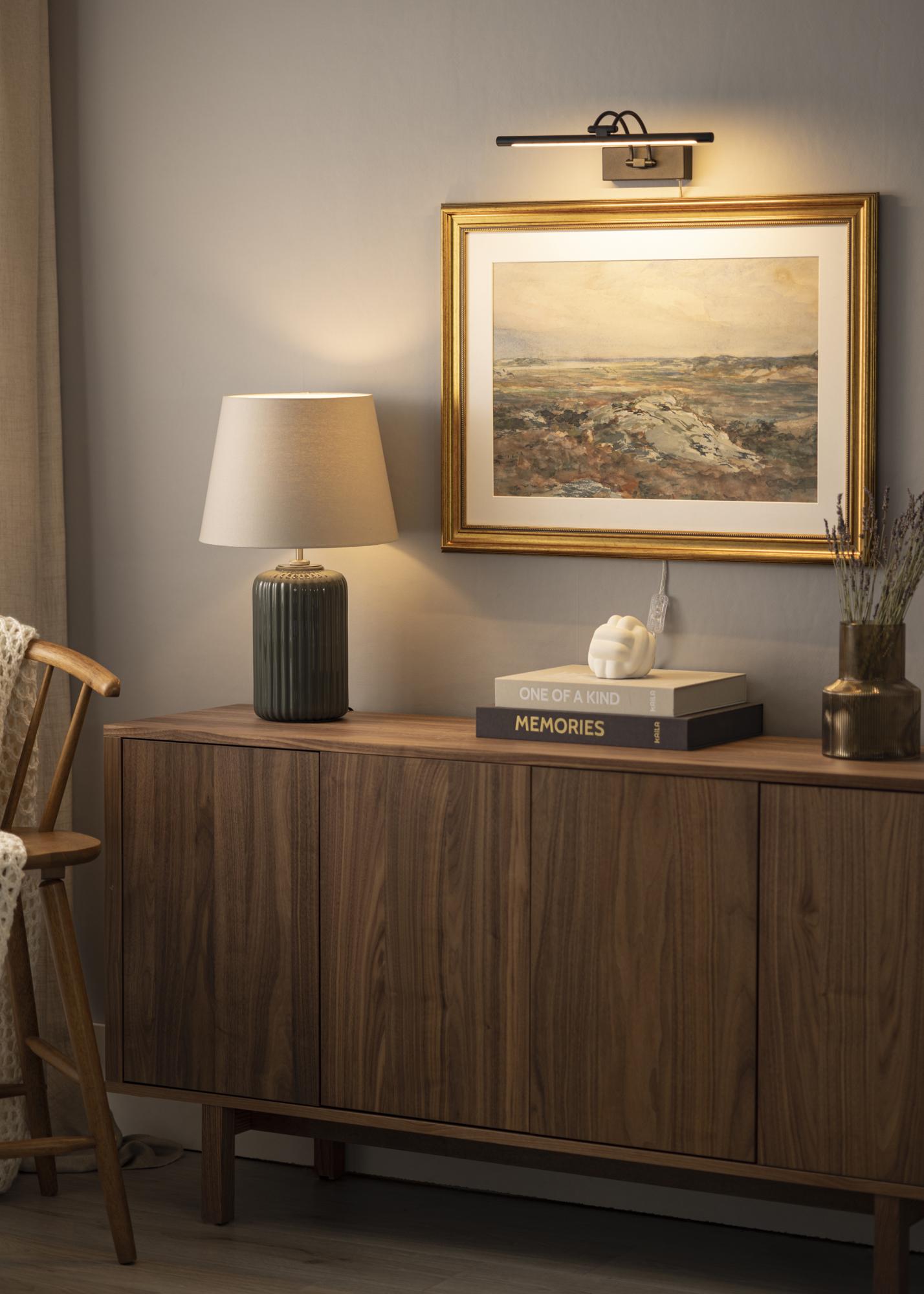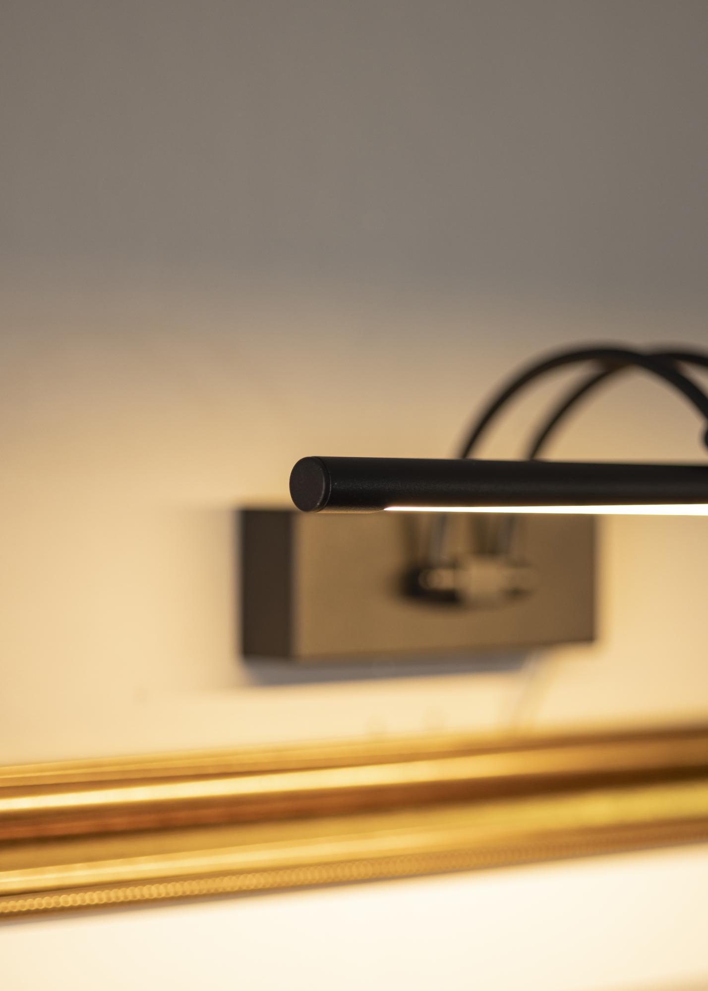 Osvetlenie obrazov v modernom švédskom dizajne, ktoré je vhodné pre obrazy so šírkou 60-100 cm. Svietidlo má výšku 5 cm a dĺžku 37 cm so vzdialenosťou od steny 20 cm. S jeho silným LED osvetlením s výkonom 720 lúmenov získate príjemné osvetlenie aj na väčších obrazoch.