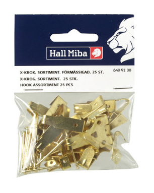 Máte skupinu ľahších plagátov alebo nástenných dekorácií, ktoré chcete rýchlo a jednoducho zavesiť na drevenú stenu? Potom sú tieto pohodlné x-háčiky s príslušnými klincami vynikajúce. Háčiky a klince majú mosadzný obal a sú dodávané v balení po 25 kusov.