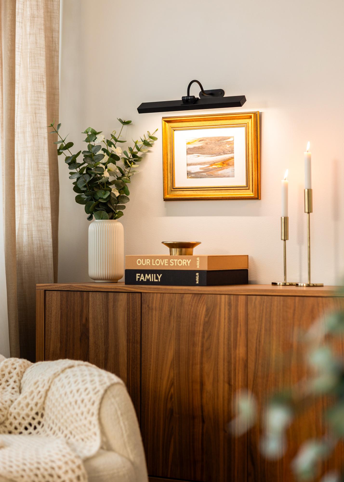 Urobte svoje umelecké diela ešte výraznejšími s KAILA Flare – elegantným a batériou napájaným osvetlením obrazov v čiernej farbe. Vďaka bezdrôtovému dizajnu môžete osvetlenie umiestniť voľne bez toho, aby ste museli premýšľať o elektrických zásuvkách alebo viditeľných kábloch. Elegantný čierny povrch poskytuje moderný vzhľad, zatiaľ čo nastaviteľné rameno na svetlo umožňuje ľahké nasmerovanie svetla tak, aby sa čo najlepšie zvýraznili detaily a farby. Jednoduché na montáž a pohodlné na používanie – praktické a štýlové riešenie pre vaše nástenné umenie.