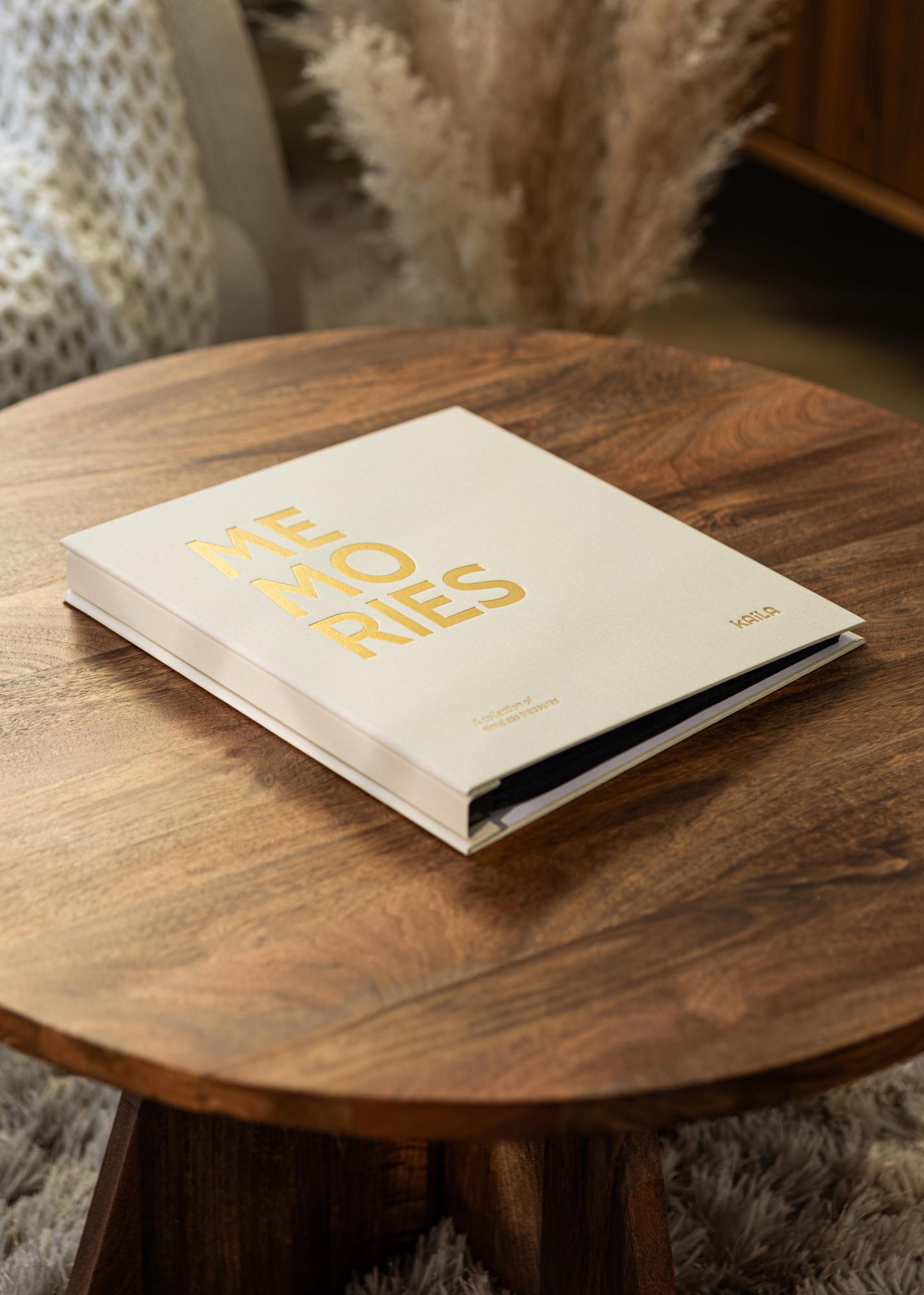 Toto je štýlový fotoalbum s nadčasovým dizajnom a praktickými vreckami na fotografie – perfektný pre vás, ktorí chcete uchovať svoje najlepšie spomienky na fotografie elegantným a jednoduchým spôsobom. Album je potiahnutý béžovou textíliou a na prednej strane je zdobený zlatým nápisom ”MEMORIES”. Pre extra pocit má album aj podtitul ”A collection of timeless treasures” napísaný v jednom rohu. Textílne poťahované dosky, spolu so zlatou farbou textu, robia z fotoalbumu luxusný interiérový doplnok, ktorý budete chcieť mať vystavený.