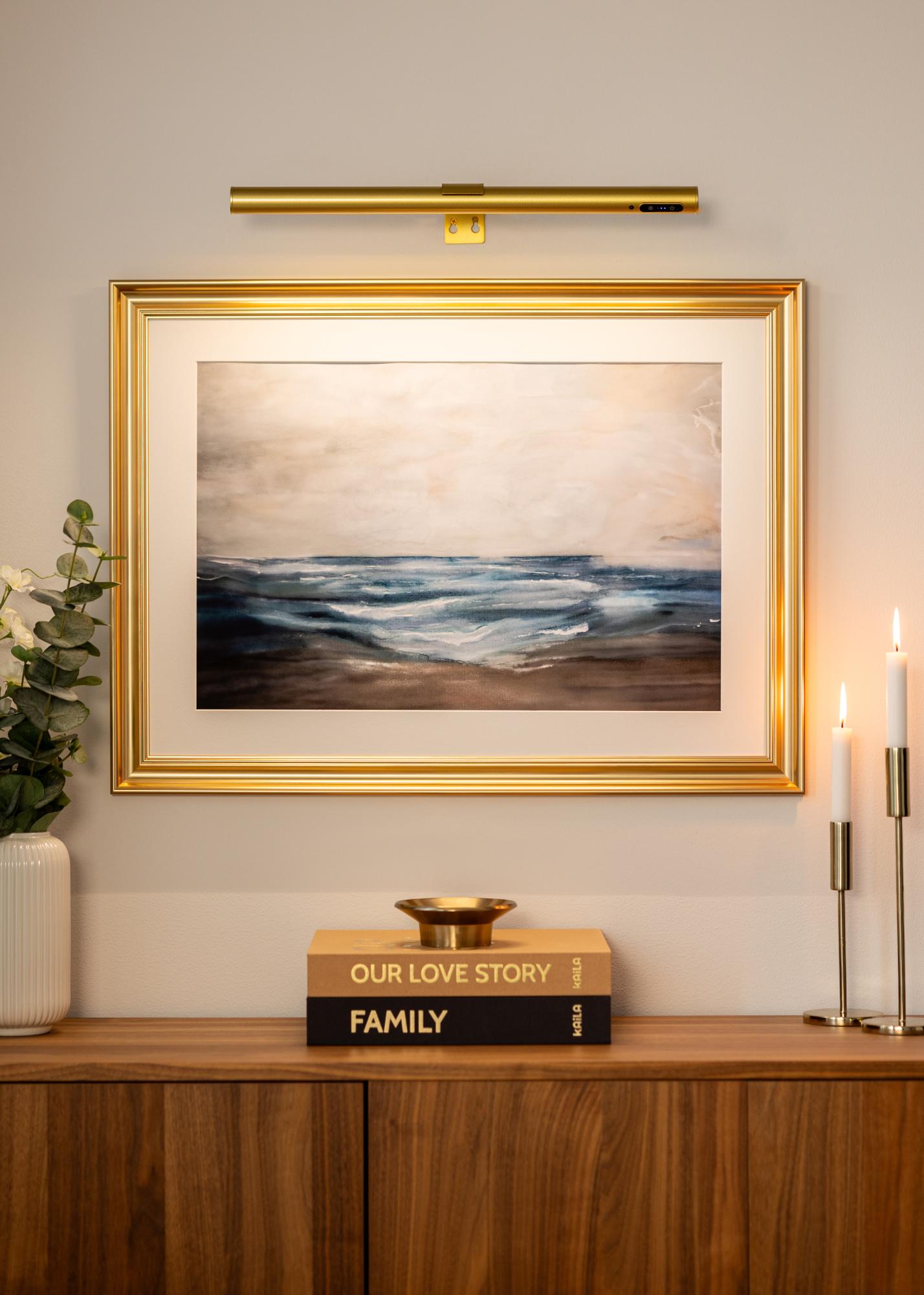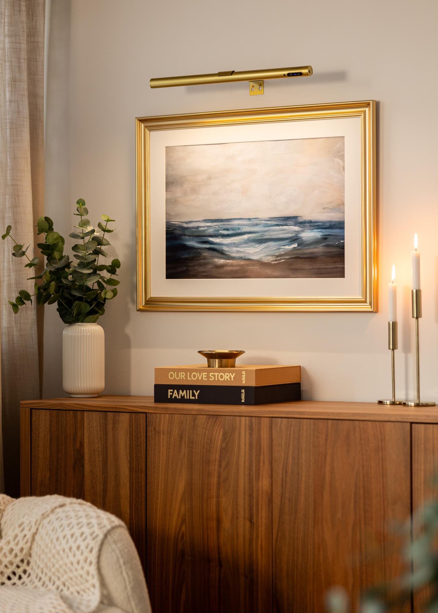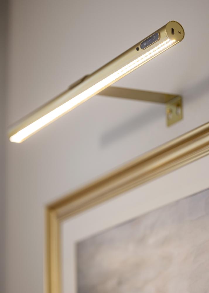 KAILA Halo je elegantné a batériou napájané osvetlenie obrazov v zlatej farbe, ideálne na osvetlenie vašich umeleckých diel bez rušivých káblov. Vďaka bezdrôtovému dizajnu ho môžete umiestniť kdekoľvek bez potreby zohľadňovania elektrických zásuviek. elegantný zlatá úprava dodáva exklusívny vzhľad, zatiaľ čo svetlo je rovnomerne rozptýlené, aby zvýraznilo detaily a farby krásnym spôsobom. Jednoduchá montáž a pohodlné použitie – praktické riešenie na to, aby vaše obrazy dostali pozornosť, ktorú si zaslúžia.