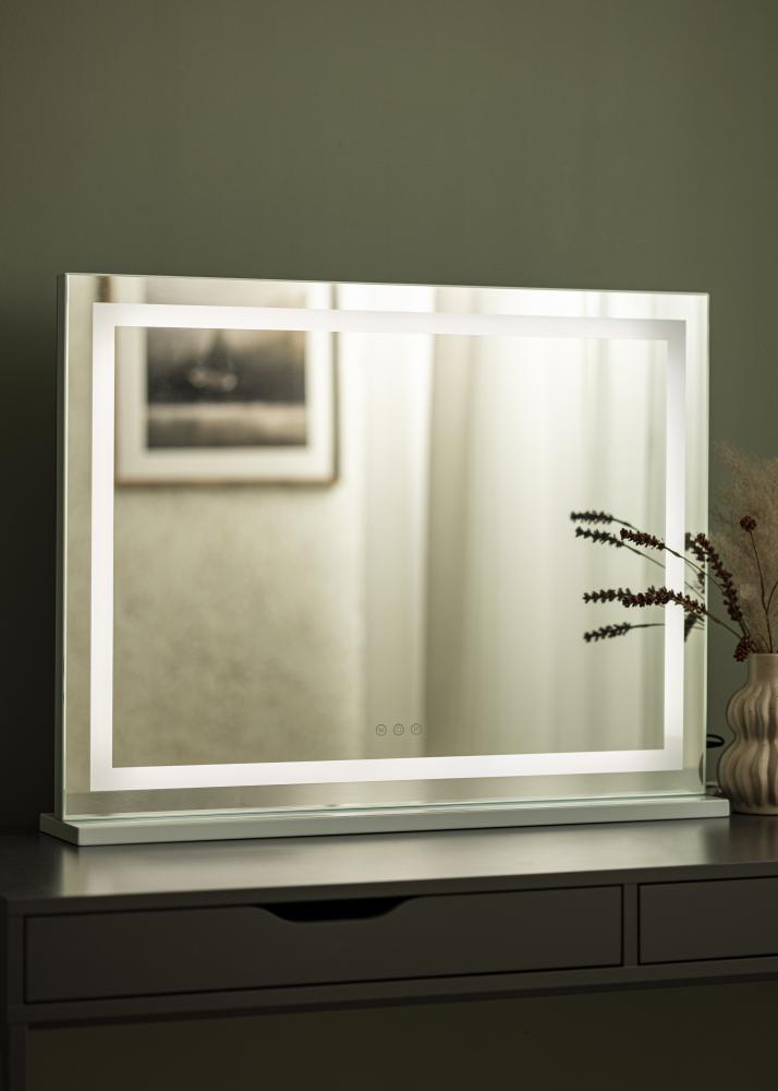 Premieňte svoj kozmetický kútik na luxusnú oázu s naším novým zrkadlom na líčenie so svetlom. Toto elegantné zrkadlo je navrhnuté v obdĺžnikovom tvare a je obklopené rámom z LED osvetlenia, ktoré nielen zvýrazňuje vzhľad miestnosti, ale aj zlepšuje váš zážitok z líčenia. Povrch zrkadla má veľkorysú veľkosť 80x60 cm, čo poskytuje optimálny výhľad bez ohľadu na miesto v miestnosti, kde sa rozhodnete ho umiestniť. Praktickosť tohto modelu spočíva v tom, že ho môžete namontovať na stenu pre pevnú inštaláciu alebo ho postaviť vodorovne na stôl, čo ho robí ideálnym pre tých, ktorí preferujú flexibilné riešenia bez nutnosti vŕtať do steny. Toto zrkadlo na líčenie je nielen funkčným prínosom, ale aj vkusným interiérovým doplnkom, ktorý sa perfektne hodí do každého moderného domova.