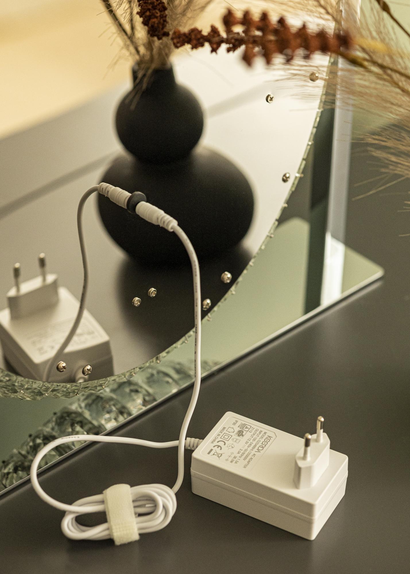 Vstavané LED osvetlenie poskytuje príjemné svetlo – ideálne pri nanášaní make-upu a príprave na deň. Svetlo môžete navyše nastaviť pomocou dotykových tlačidiel na spodnej hrane zrkadla. Pomocou tlačidla "M" môžete zmeniť farebnú teplotu osvetlenia a tlačidlom "P" znížiť svetlo na požadovanú intenzitu. K dispozícii je aj tlačidlo na zapínanie a vypínanie osvetlenia zrkadla. Elektrické pripojenie sa uskutočňuje pomocou sieťovej zástrčky.