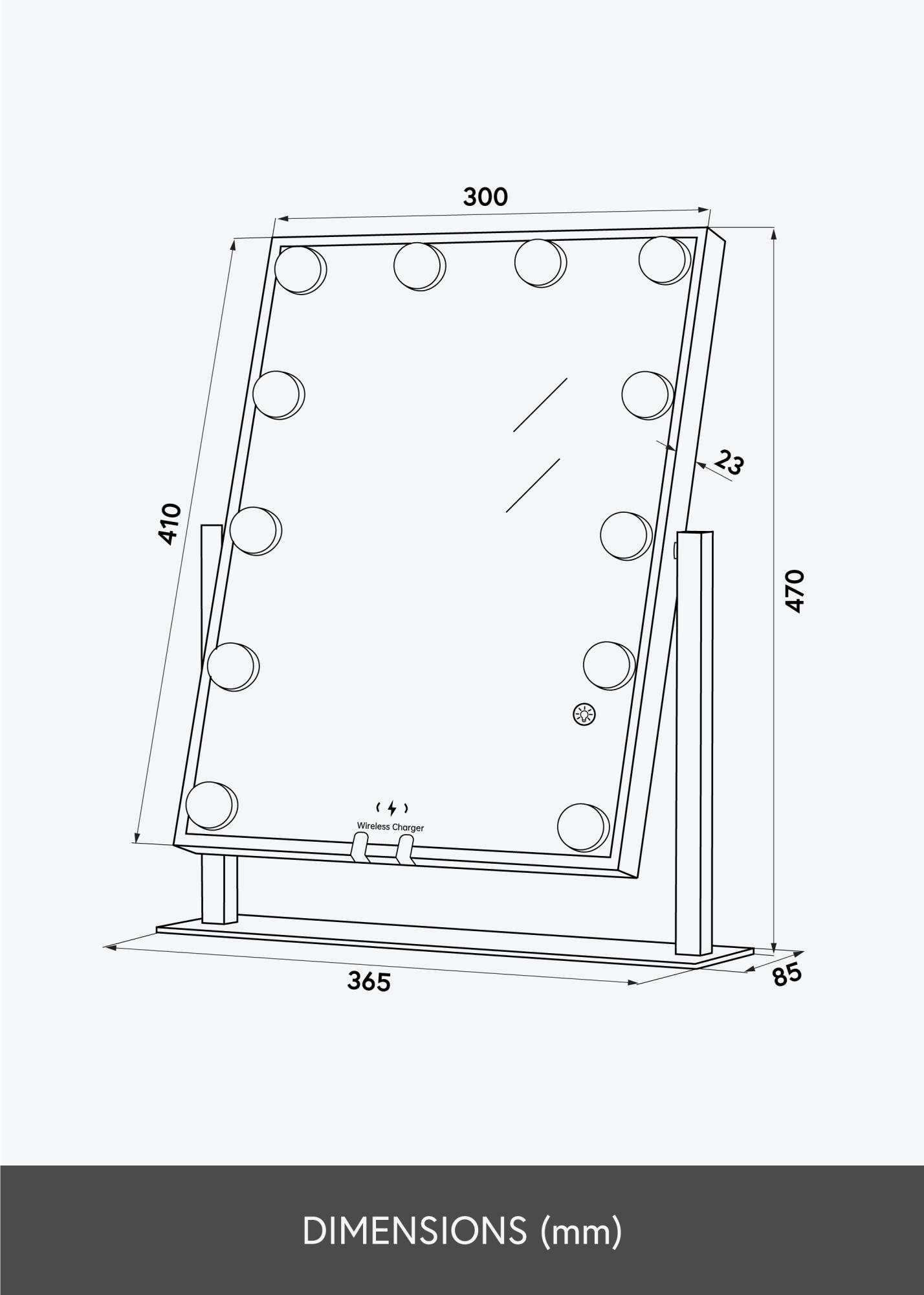 Chceš nabíjať svoj smartfón, zatiaľ čo sedíš pred zrkadlom? Žiadny problém. Toto kozmetické zrkadlo má zabudované nabíjanie pre všetky zariadenia smartfónov, ktoré podporujú bezdrôtové nabíjanie. Stačí umiestniť svoje zariadenie na určené miesto na zrkadle a nabiť svoj smartfón s 5V/2A (10 W). Funkcia je vždy zapnutá, keď je zrkadlo zapnuté.