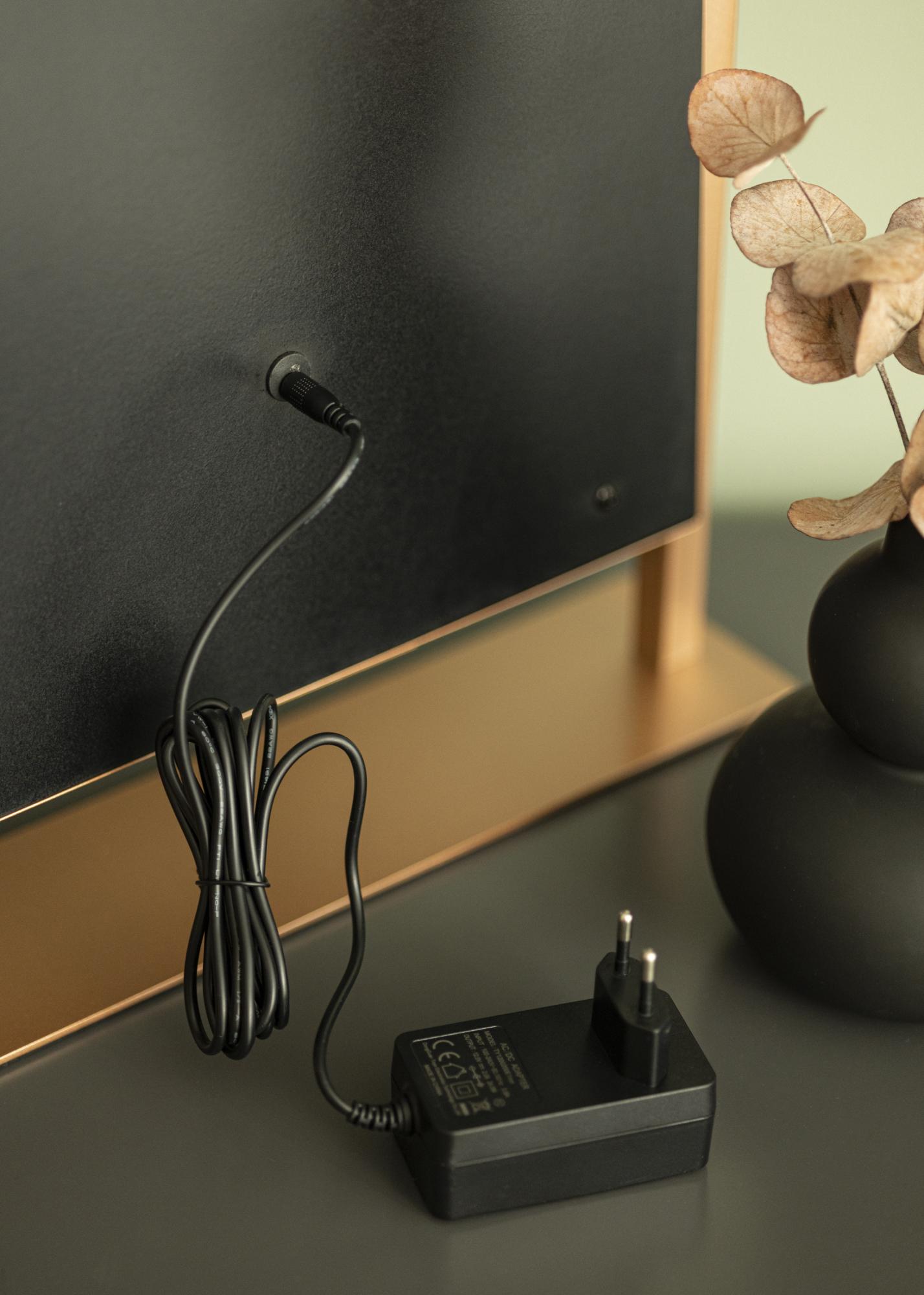 Zrkadlo má vertikálny dizajn a môže byť jednoducho umiestnené na komodách, príborníkoch a stoloch. Elektrické pripojenie sa vykonáva pomocou zásuvky.