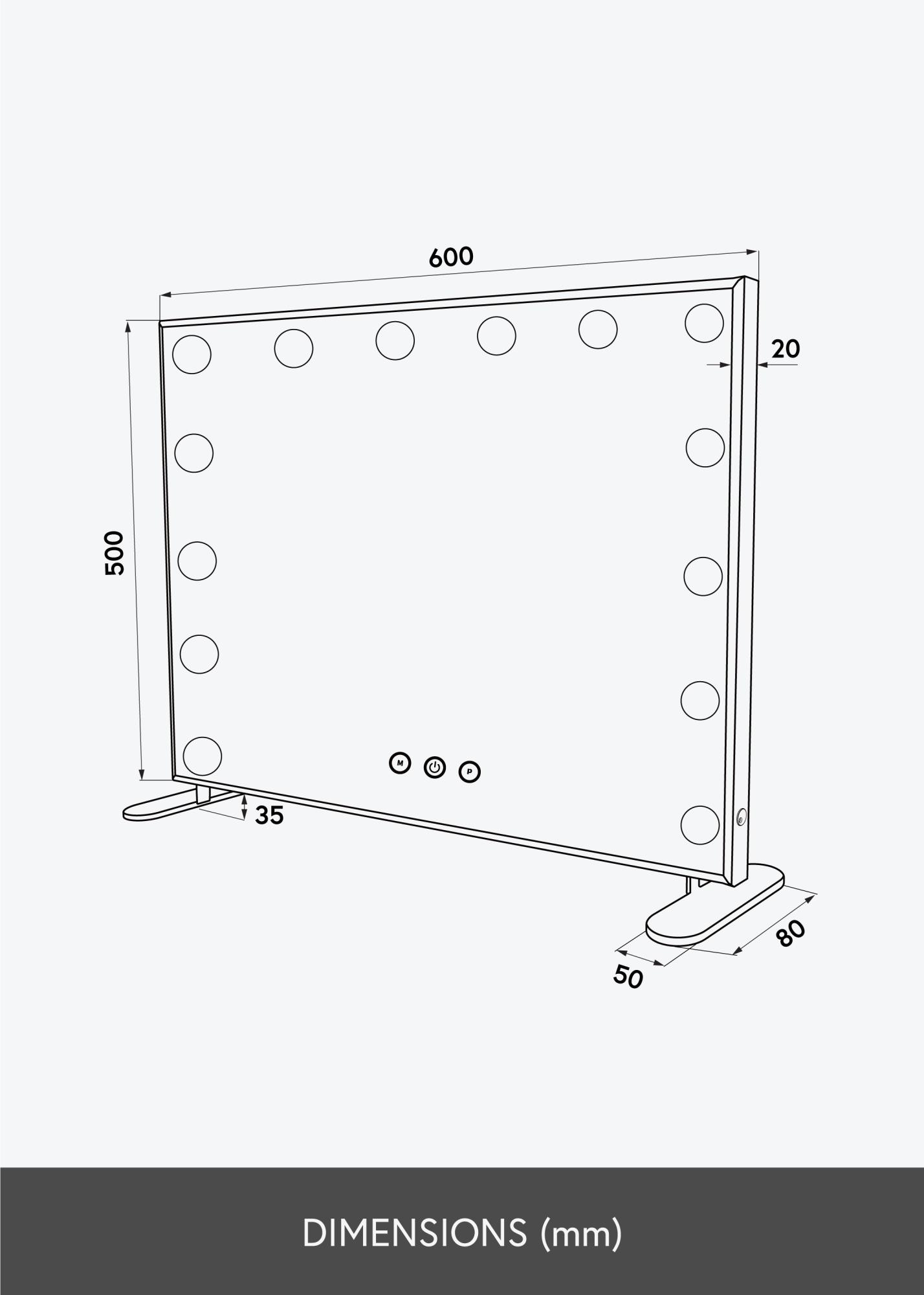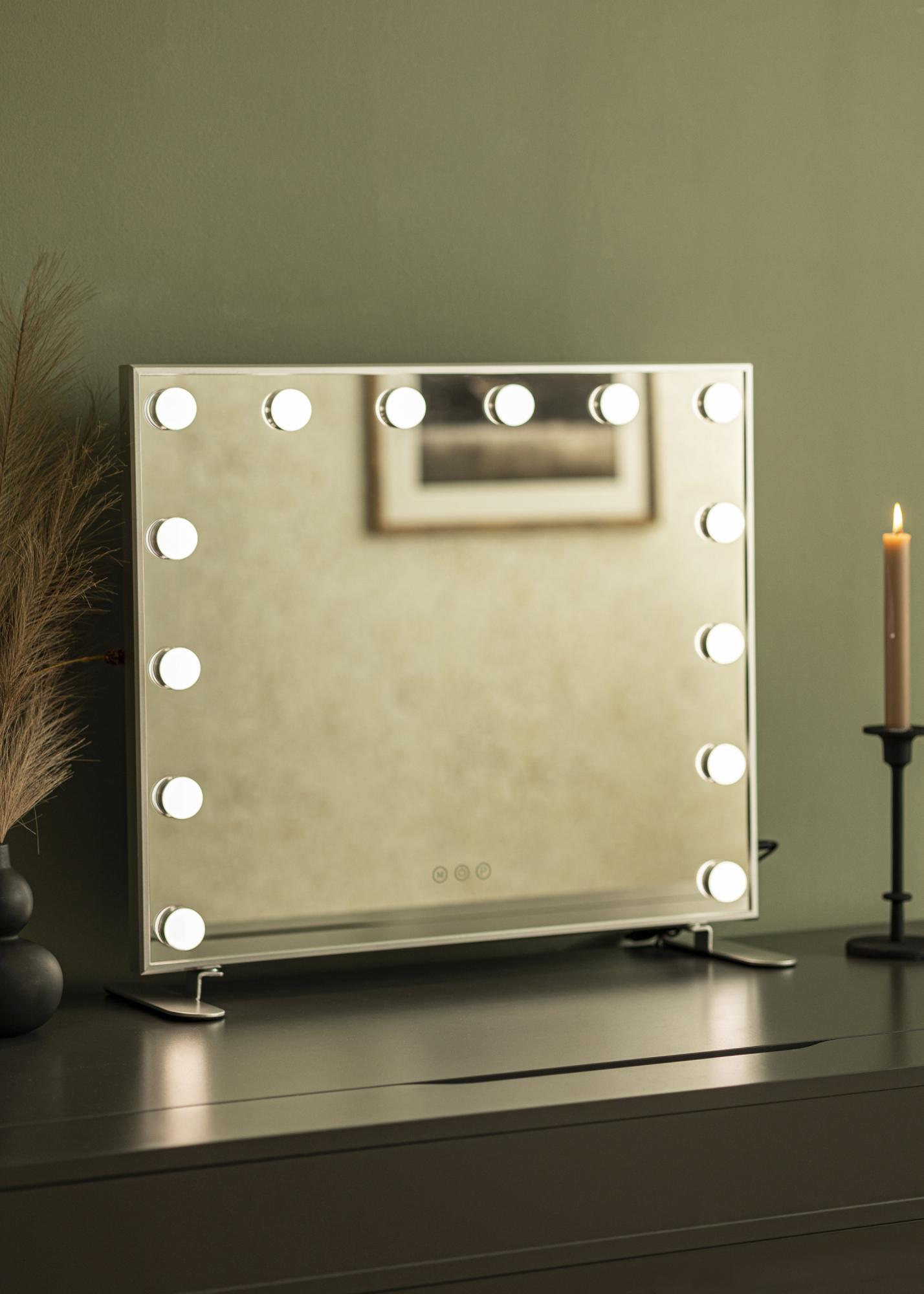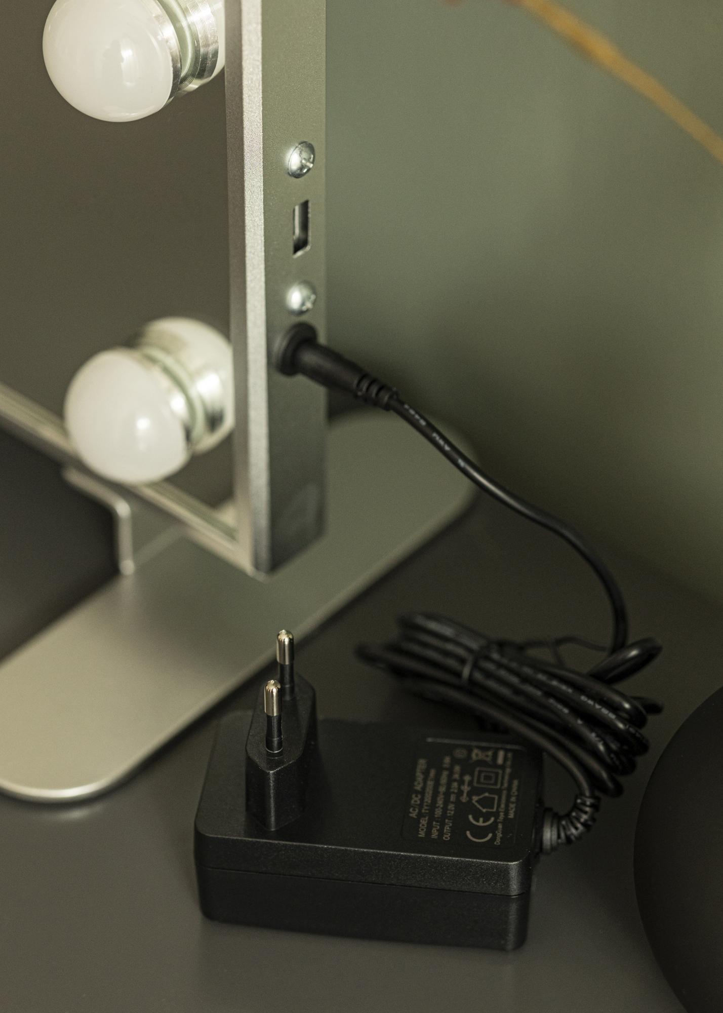 Toto je štýlové kozmetické zrkadlo, ktoré sa stane pekným doplnkom v každej miestnosti domácnosti. Tenký strieborný rám, ktorý obklopuje zrkadlovú plochu s rozmermi 60x50 cm, dodáva veľmi elegantný vzhľad, zatiaľ čo 14 zaoblených LED lámp umiestnených okolo okrajov zrkadla poskytuje exkluzívny pocit. Na jednej strane zrkadla je USB port, ktorý vám umožňuje nabíjať vaše inteligentné zariadenia prostredníctvom USB pripojenia.