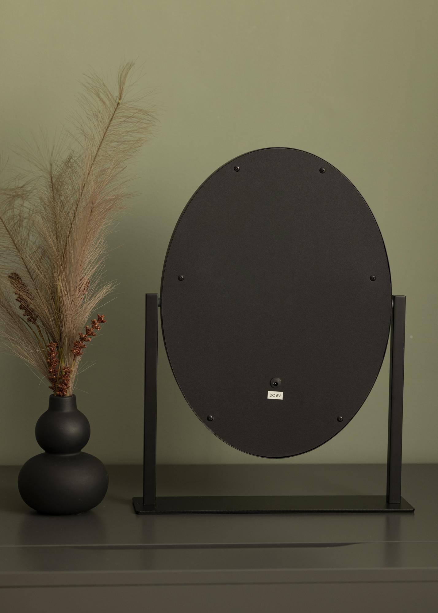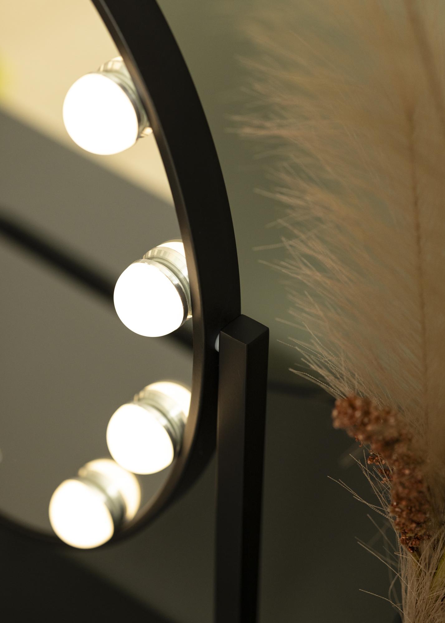Toto je kozmetické zrkadlo v elegantnom oválnom tvare od švédskej značky KAILA. Kozmetické zrkadlo má štýlový čierny dizajn a má integrované stmievateľné LED osvetlenie. LED osvetlenie vo forme 10 žiaroviek poskytuje rovnomerný a teplý biely tón 3000K. Osvetlenie sa zapne dotykom na tlačidlo a intenzita sa jednoducho nastavuje podržaním tlačidla na niekoľko sekúnd. LED je energeticky úsporný zdroj svetla s prirodzeným svetlom, ktoré je ideálne na aplikáciu make-upu. Kozmetické zrkadlo má rozmery 34x47 cm a je možné ho otočiť o 360° vertikálne, čo vám umožňuje jednoducho sa naň pozrieť z rôznych uhlov. Nadčasový a glamourový dizajn vytvára vo vašom dome pocit Hollywoodu!