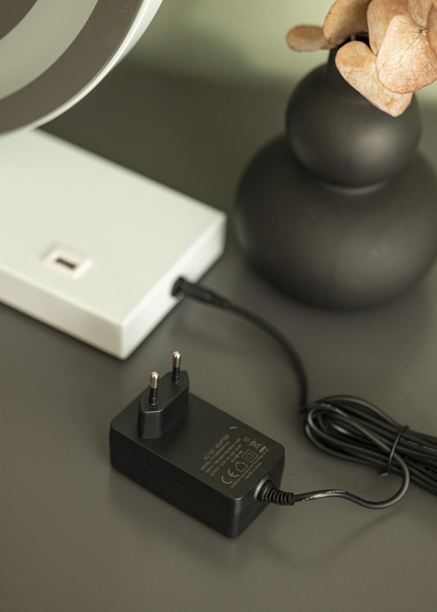 Toto zrkadlo má ďalšiu funkciu – USB port na nabíjanie inteligentných zariadení. Týmto spôsobom môžete nabíjať telefón a mať ho blízko, keď sa líčite. Elektrické pripojenie sa vykonáva pomocou zástrčky.