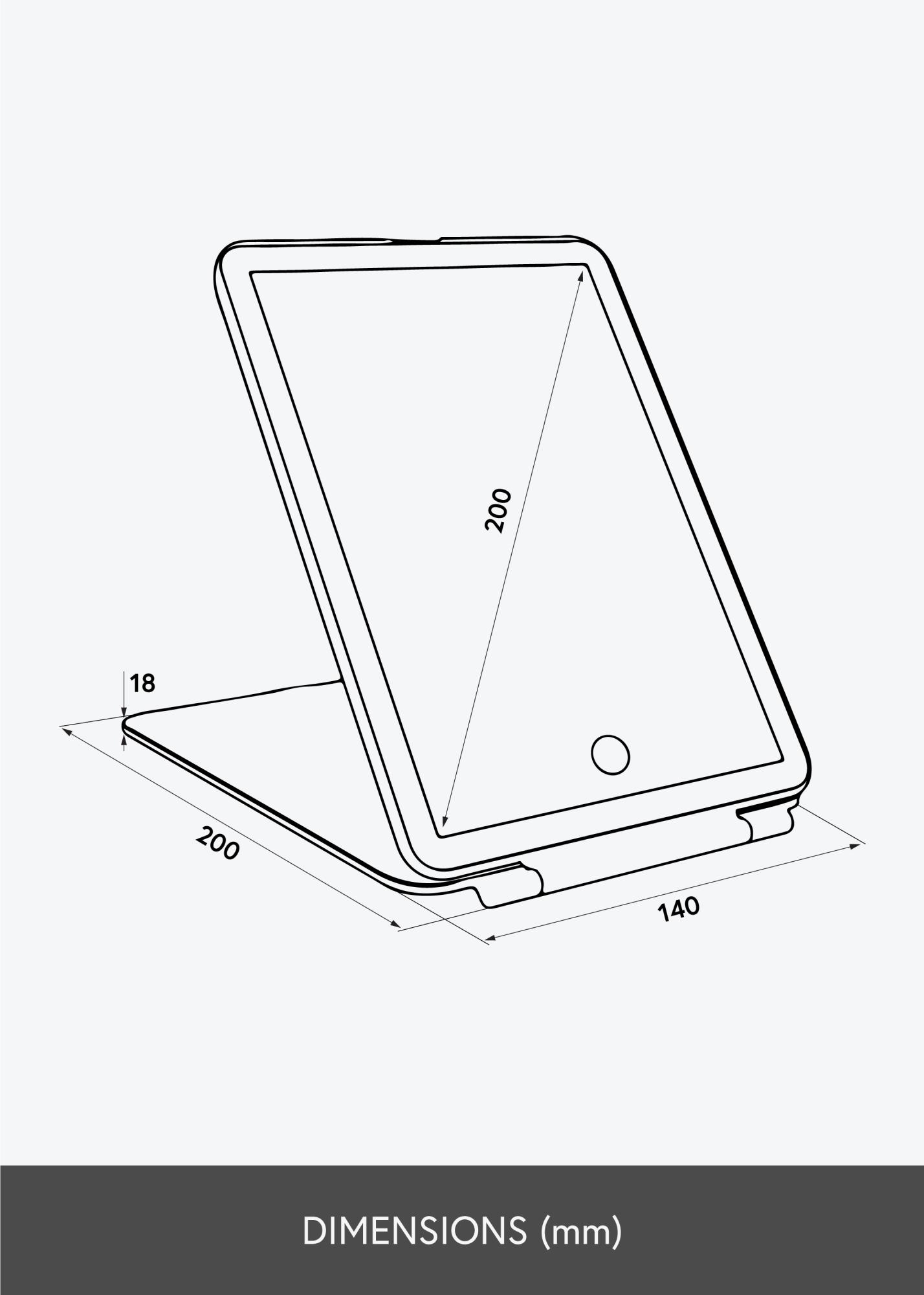 Pekná, hladká a ľahká – toto kozmetické zrkadlo má všetko, čo potrebujete na cestách. Kompaktný formát, s plochou zrkadla 14x20 cm, umožňuje ľahké prenášanie vo vrecku pri akejkoľvek príležitosti. Kozmetické zrkadlo má skladací dizajn, ktorý chráni povrch zrkadla pred prachom, keď sa nepoužíva, a v roztvorenom stave môžete zrkadlo nakloniť podľa potreby.