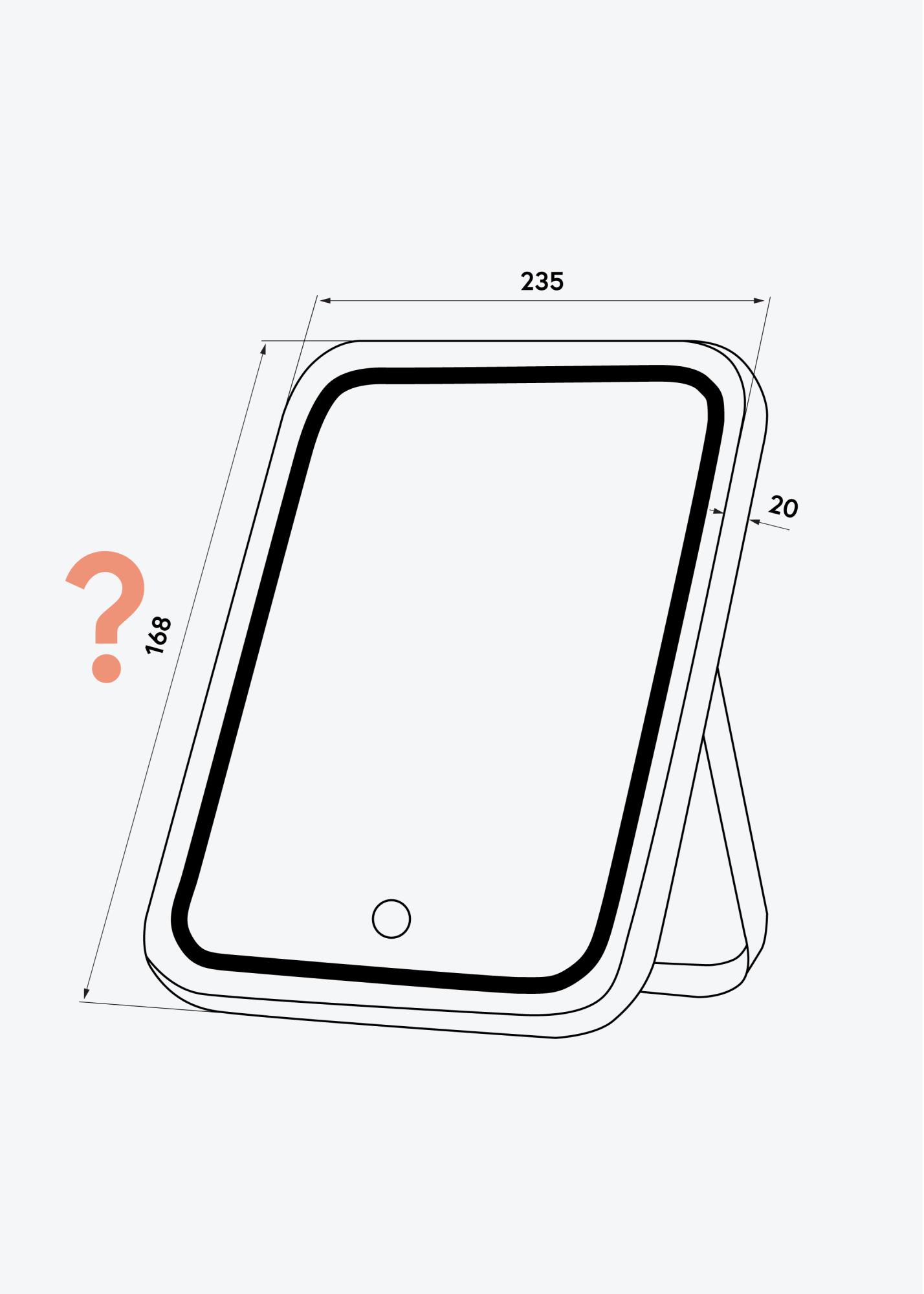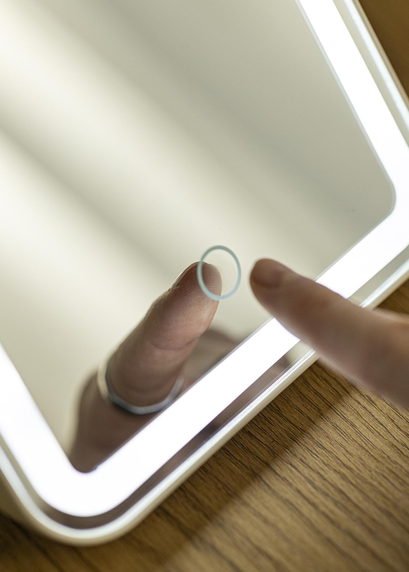 Toto je zrkadlo na líčenie v menšom modely, čo je perfektné pre tých, ktorí radi majú so sebou zrkadlo, keď cestujú. Má zrkadlovú plochu 16,5x23 cm, ktorú rámuje elegantný LED pás. Pre vaše pohodlie môžete jednoducho stlmiť svetlo alebo zmeniť farebnú teplotu osvetlenia. To urobíte tak, že podržíte dotykové tlačidlo na spodnom okraji zrkadla niekoľko sekúnd.