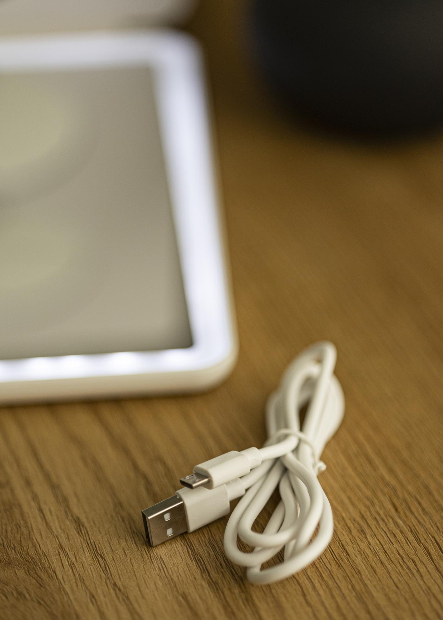 Keď sa zapnuté zrkadlo zloží, automaticky sa prepne do režimu šetrenia energie, kým zrkadlo znova neotvoríte. Toto zrkadlo na líčenie je napájané batériami a nabíja sa cez USB pripojenie.