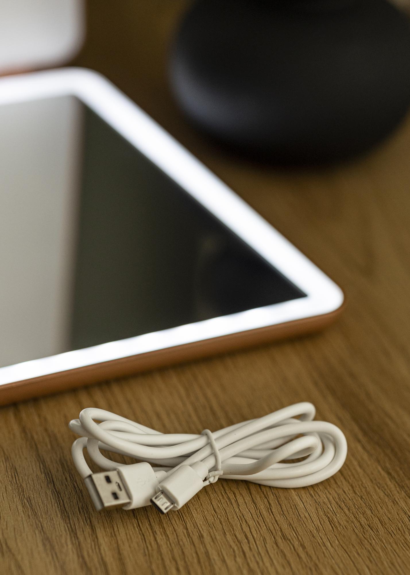 Zabudovaná LED páska poskytuje príjemné svetlo pri pohľade do zrkadla. Osvetlenie je napájané z integrovanej batérie, ktorá sa jednoducho nabíja cez USB pripojenie. Zrkadlo je vybavené dotykovým tlačidlom, ktoré sa používa na zapnutie a vypnutie osvetlenia a na stlmovanie svetla. Ak zrkadlo zatvoríte, keď je zapnuté, automaticky sa prepne do úsporného režimu a svetlo sa vypne, až kým zrkadlo opäť neotvoríte.