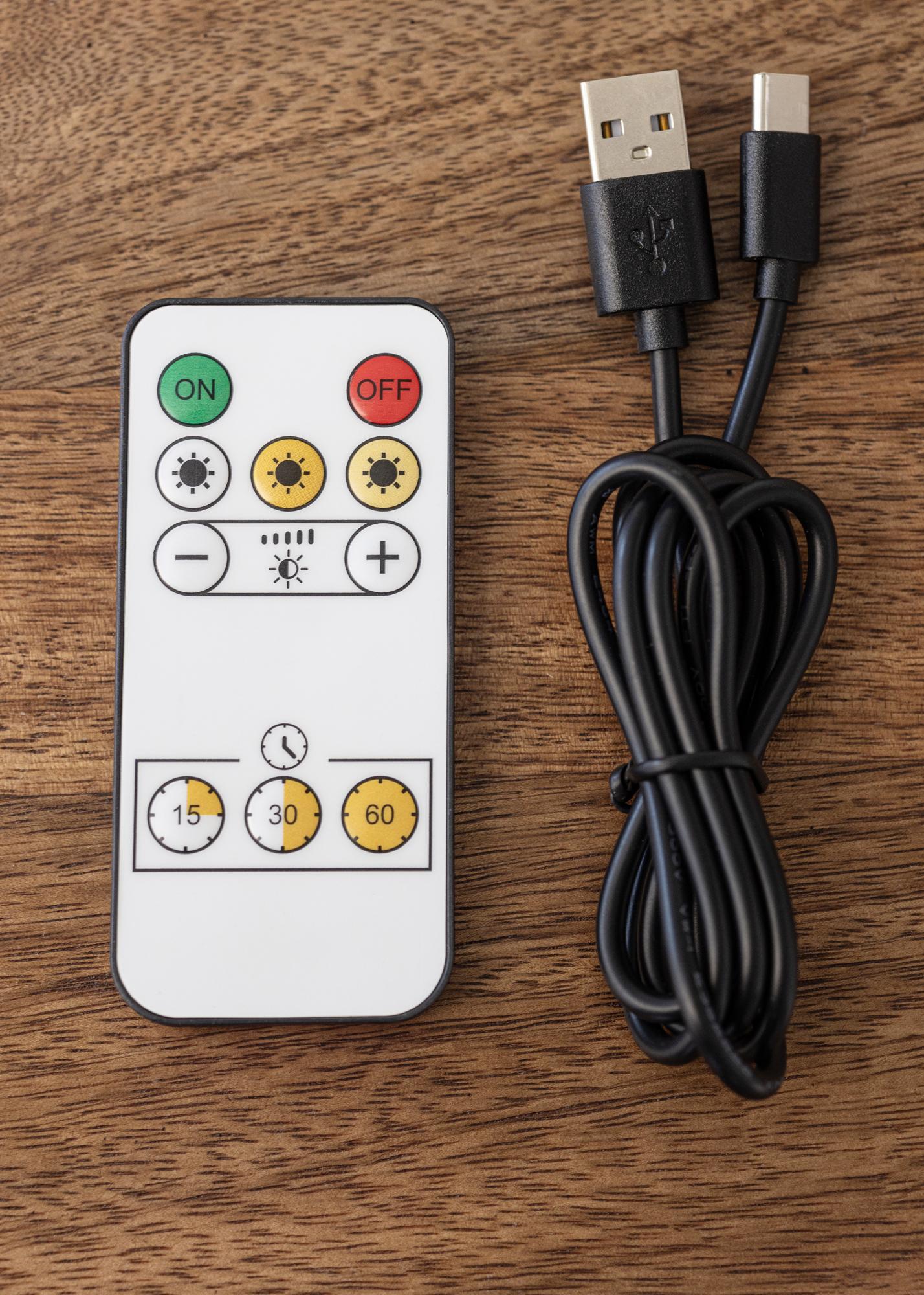 S pomocou dodaného diaľkového ovládača môžete ľahko nastaviť jas, farebnú teplotu a nastaviť časovač na 15, 30 alebo 60 minút. To vám umožní prispôsobiť osvetlenie podľa vašich potrieb a ušetriť batériu prostredníctvom automatického vypnutia svetla po určitej dobe.