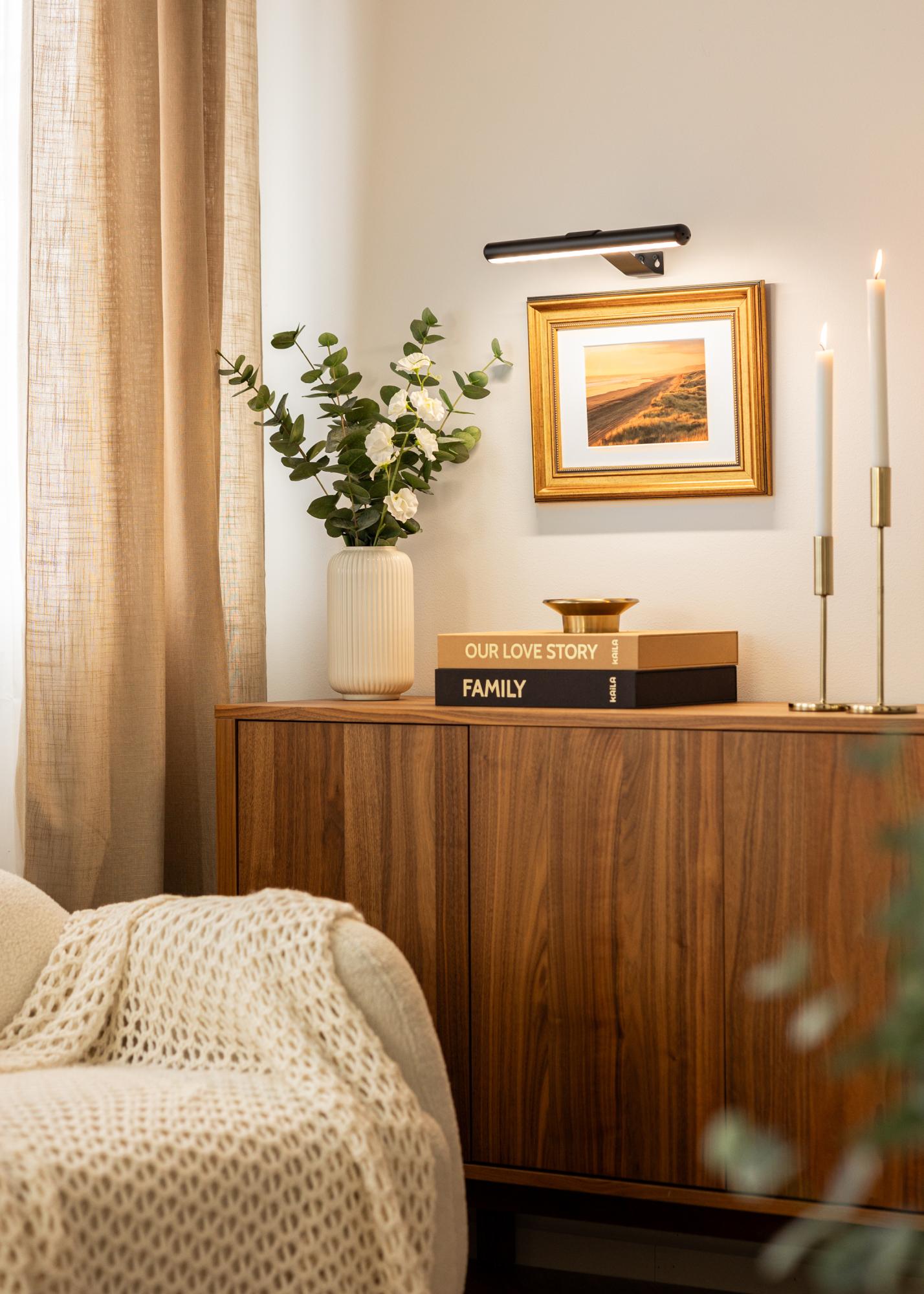 Toto batériové osvetlenie obrazu v čiernom dizajne je štýlové a praktické riešenie na zvýraznenie vašich umeleckých diel bez potreby používania káblov. S flexibilnou inštaláciou ho môžete umiestniť kdekoľvek na stenu, čo ho robí ideálnym pre priestory, kde nie je elektrická zásuvka po ruke. S jeho kompaktnou hĺbkou 15 cm a dĺžkou 33 cm je výborné pre osvetlenie umeleckých diel s maximálnou šírkou až do 60 cm.