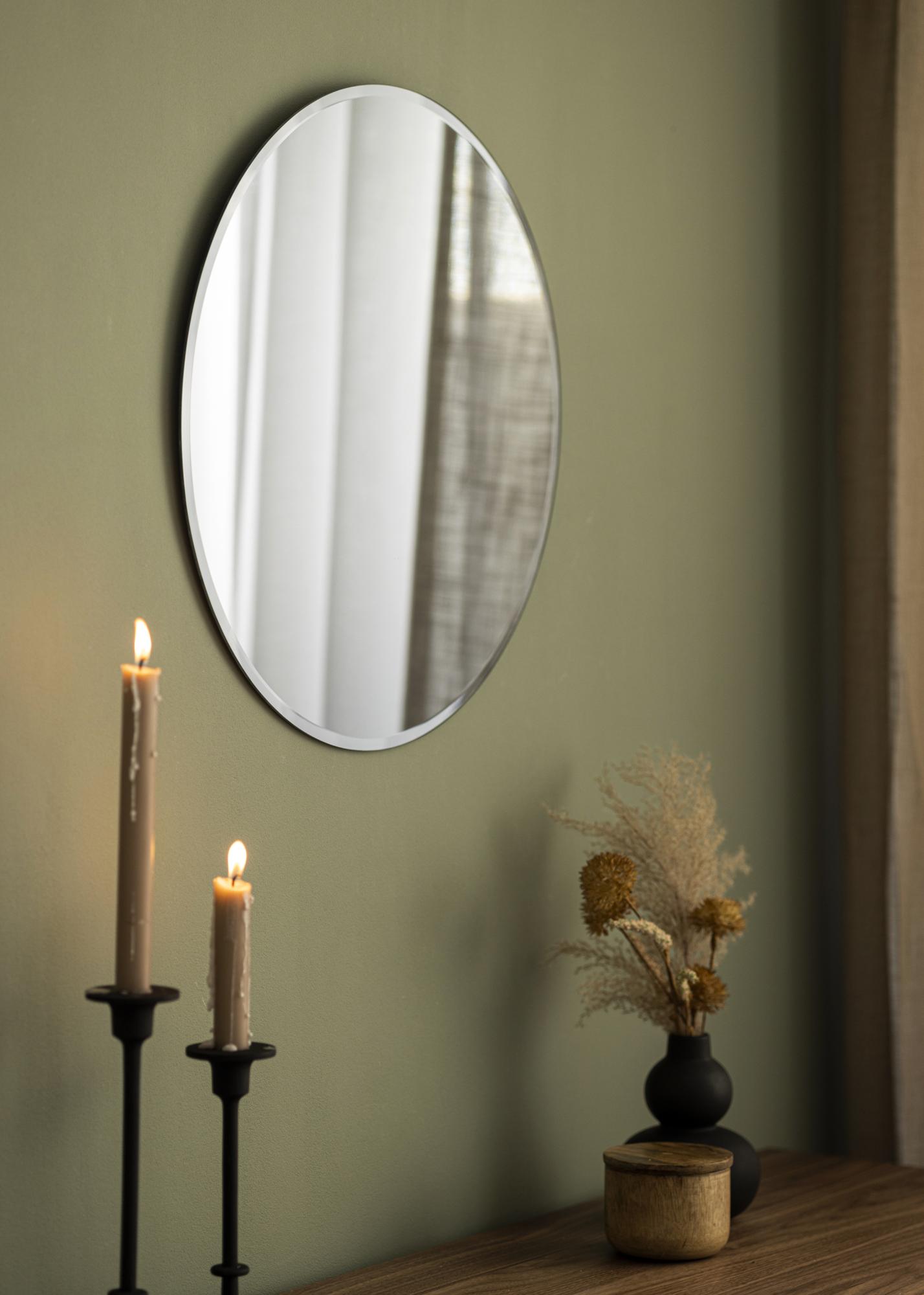 Elegantný pocit, ktorý tvar a farba zrkadla sprostredkuje, je posilnený tým, že zrkadlo nemá žiadny rám. Namiesto toho sú hrany zdobené elegantnou fazetovou hranou, čo zrkadlu dodáva ten správny šarm.