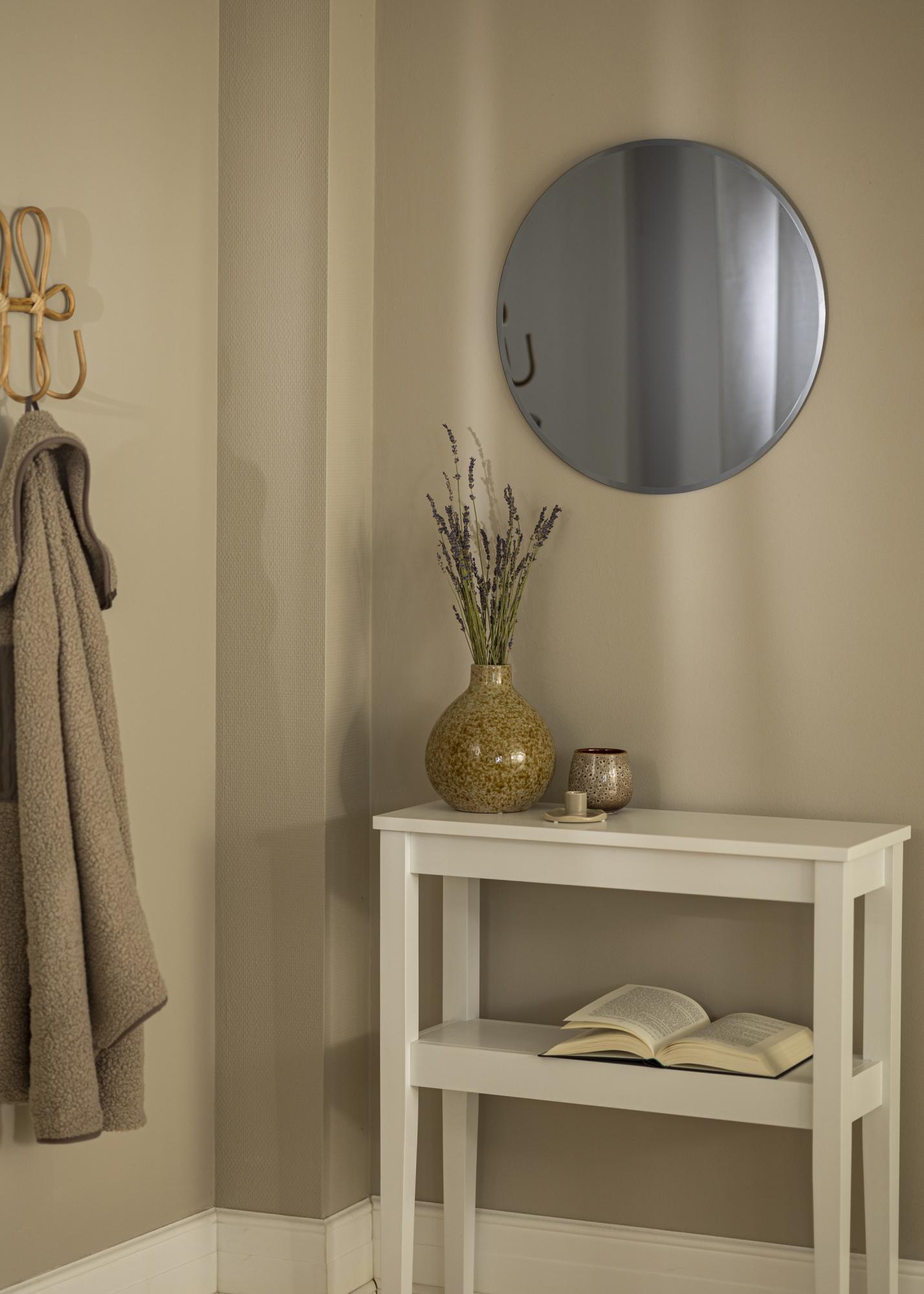 Zrkadlo s tónovaným zrkadlovým sklom je vynikajúcim interiérovým doplnkom s veľkým charakterom. Toto je okrúhla varianta so šedým tónovaným sklom – tlmenejší odtieň, ktorý dodáva luxusný, hotelový pocit. Šedá farba sa výborne hodí do domov zariadených v tmavšom štýle, ale stáva sa aj skvelým kontrastom na svetlých stenách. Toto nástenné zrkadlo odráža svetlo ako bežné zrkadlo, ale v jemnejšom svetelnom odtieni.