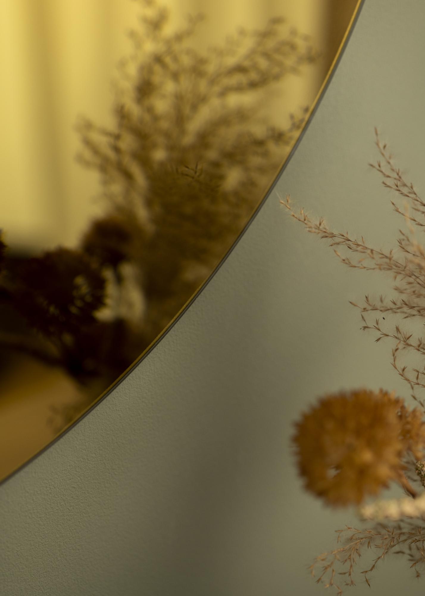 Táto okrúhla zrkadlo má elegantný dizajn s efektne spracovaným detailom; elegantné zlaté sklo. Tento detail dodáva zrkadlu luxusný vzhľad, zároveň v kombinácii s minimalistickým tvarom – tenkým a bez rámu – vytvára moderný a vkusný celok.