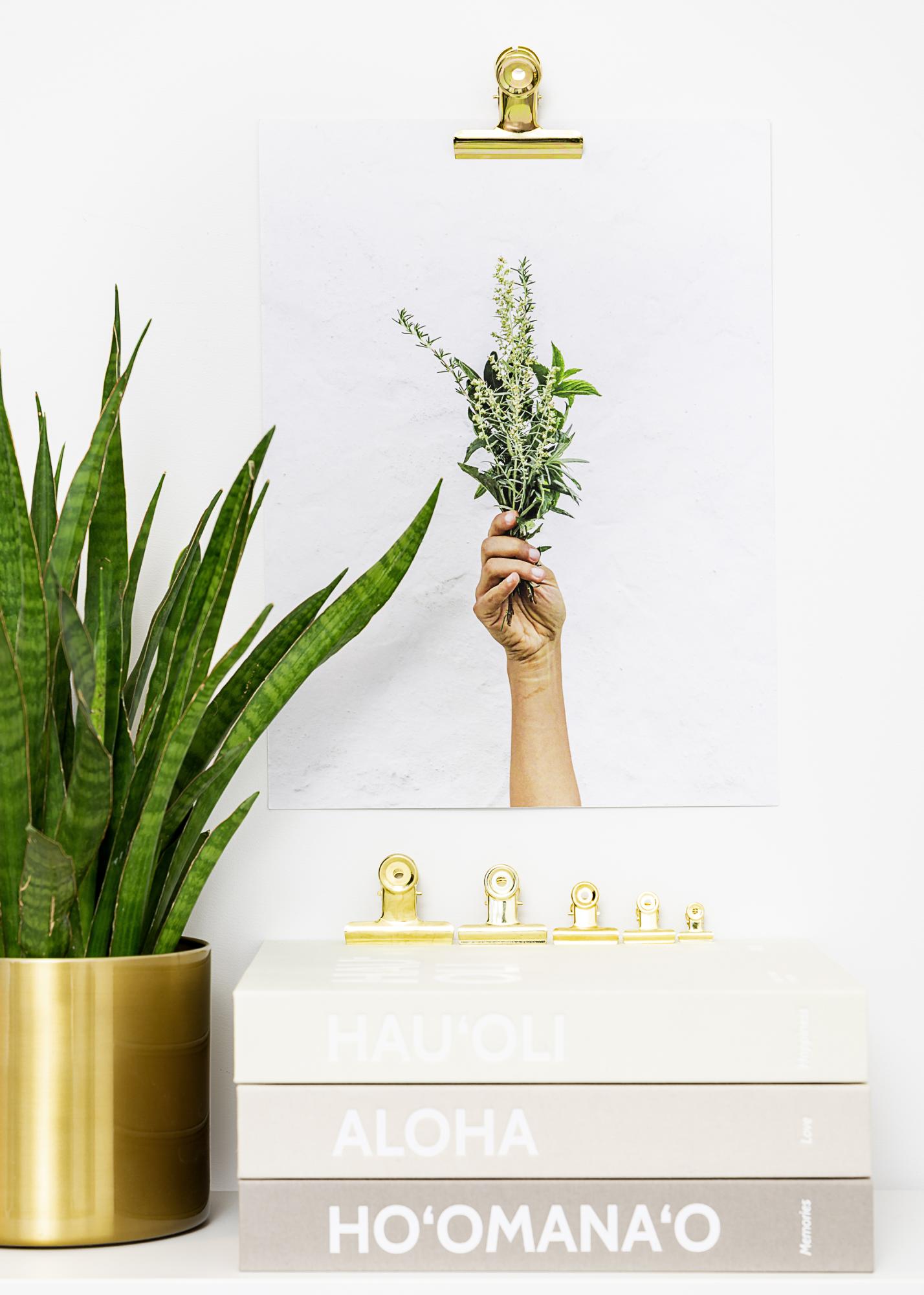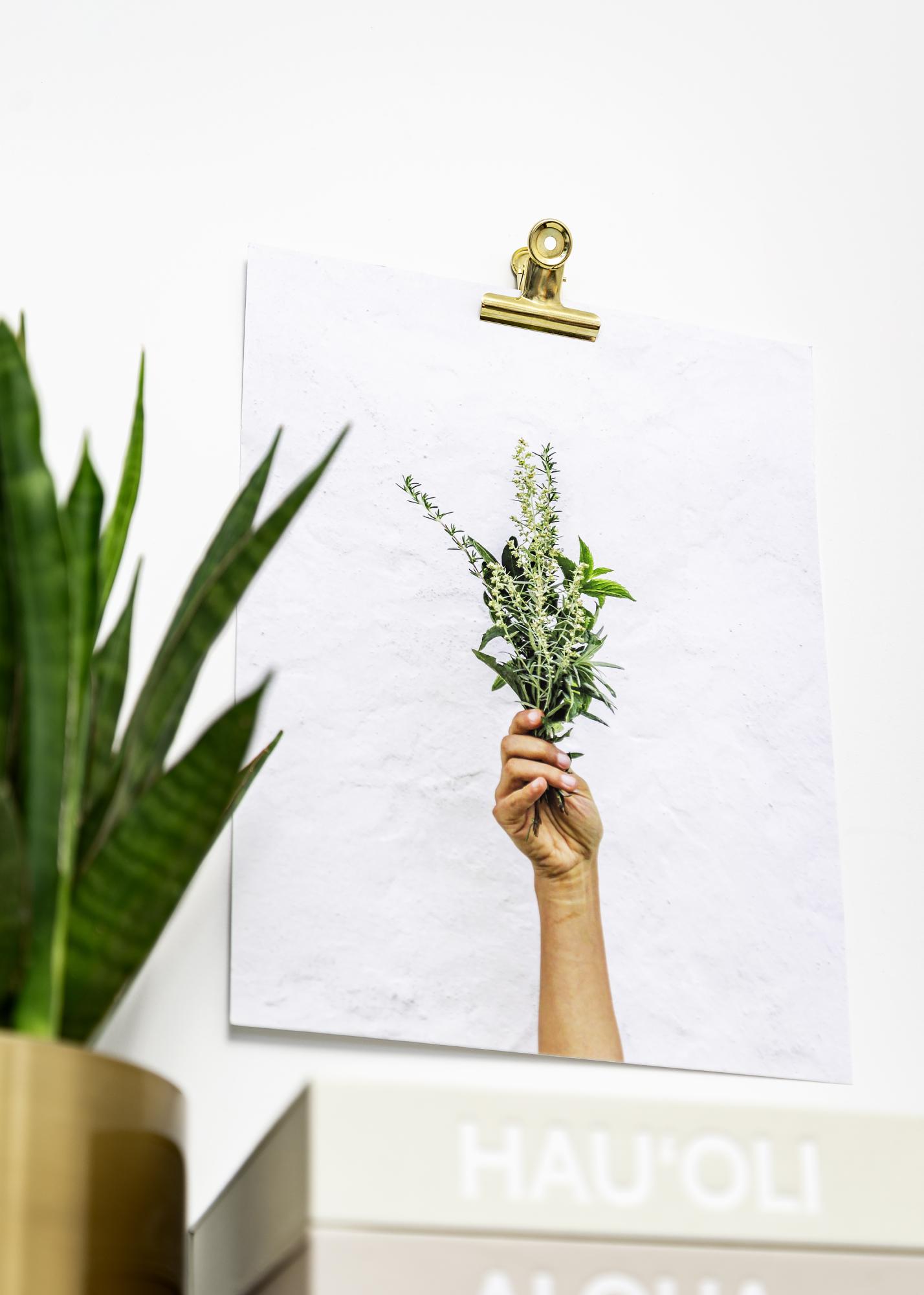 Kovová svorka v elegantnom a lesklom zlatom prevedení, ktorá dodáva vašim plagátom a tlačiam trendy a minimalistické zavesenie. Dizajn svorky na plagáty je čistý a diery v okrúhlom vrchu svorky umožňujú jednoduché pripevnenie na stenu na malý klinček alebo skrutku. Otvor svorky má pevný úchop, vďaka čomu môžete zavesiť aj tenký papier, pričom je tiež flexibilná a umožňuje montáž motívov v rôzne hrubej podobe. Ak chcete zavesiť veľký plagát, použite dve kovové svorky pre najlepší výsledok.