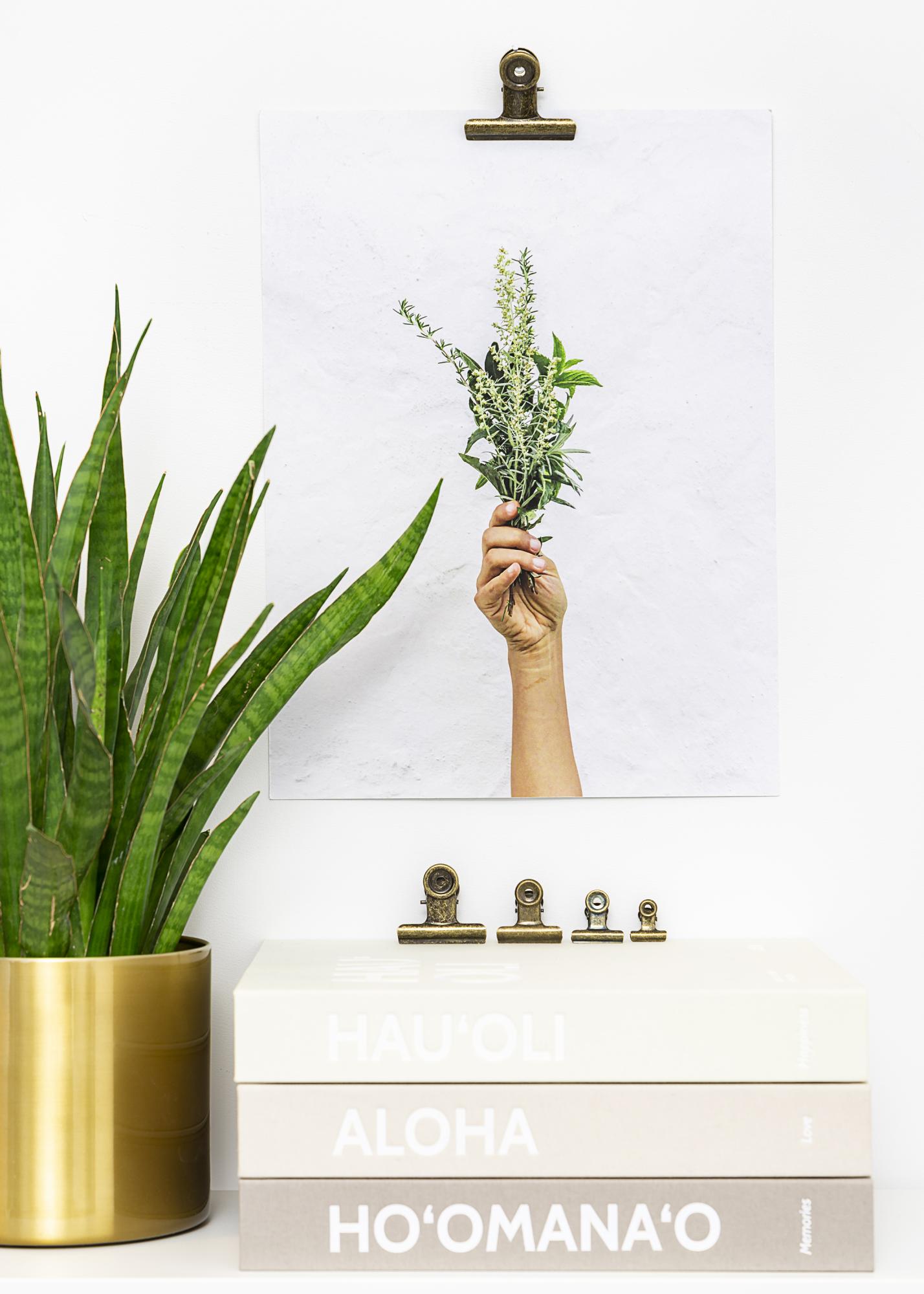 Táto štýlová kovová spona vám poskytuje jednoduchý a moderný spôsob, ako zavesiť plagáty a výtlačky na stenu, pričom krásne ošúchaná bronzová farba môže osloviť aj vás, ktorí máte radi interiérové doplnky v rustikálnom štýle. Otvor spony má pevný, ale flexibilný úchop, ktorý umožňuje upevniť či už supertenké papiere, alebo plagáty o niečo hrubšej hrúbky. Ak máte plagát väčšieho formátu, ktorý chcete zavesiť, môžete jednoducho použiť dve kovové spony. Montáž na vašu stenu je jednoduchá vďaka otvorom v štýlovo okrúhlym vrchole spony na plagát.