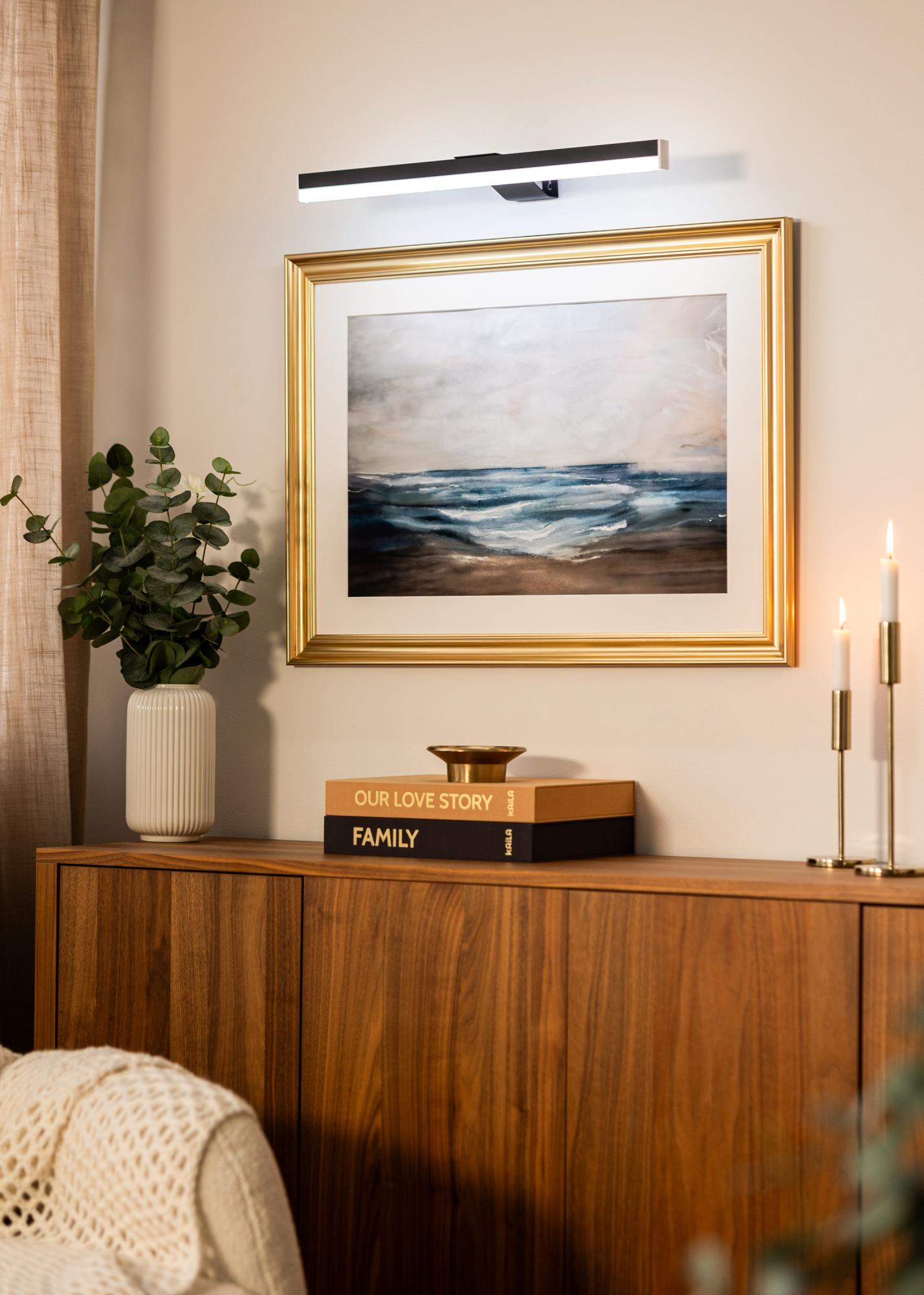 KAILA Radiate je elegantné a batériové osvetlenie obrazov v čiernej farbe, navrhnuté na zvýraznenie vašich umeleckých diel bez rušivých káblov. Konštrukcia bez káblov umožňuje jednoduchú a flexibilnú montáž bez ohľadu na elektrické zásuvky. Elegantný čierny povrch dodáva moderný a sofistikovaný vzhľad, zatiaľ čo rovnomerné svetlo efektívne zvýrazňuje detaily a farby. Jednoduché na inštaláciu a praktické na používanie – praktické a štýlové riešenie pre vašu nástennú umenie.