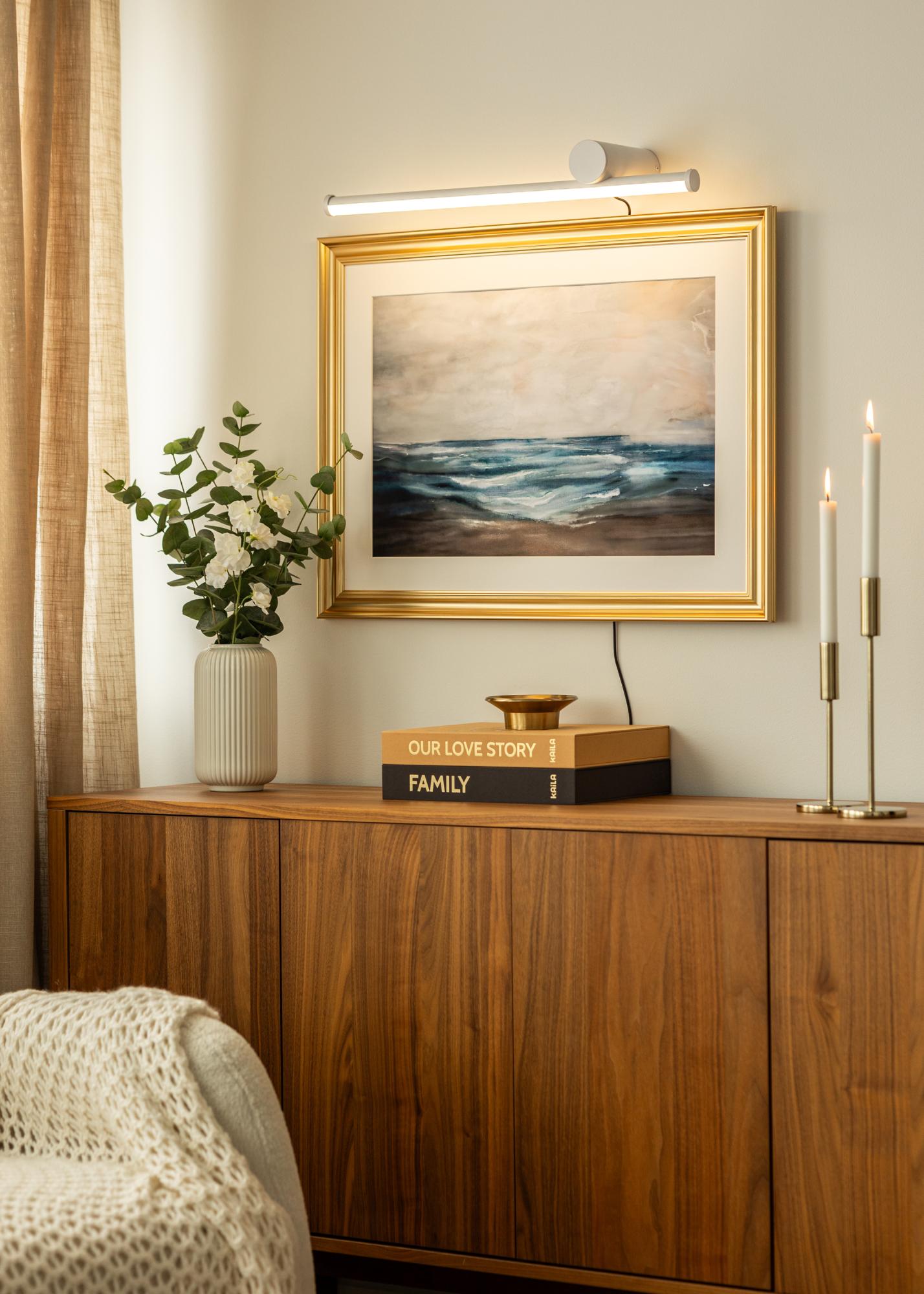 Osvetlenie je vybavené LED zdrojom svetla, ktorý poskytuje teplé biele svetlo s farebnou teplotou 3000K. Toto poskytuje jemné a príjemné svetlo, ktoré zvýrazňuje detaily vášho umeleckého diela prirodzeným spôsobom. Svetelný tok je 780 lúmenov, čo je dostatočné na osvetlenie vášho obrazu bez vytvárania ostrých kontrastov alebo prehlcovania miestnosti. Svetlo sa rovnomerne šíri cez umelecké dielo, aby ukázalo všetky detaily najlepším možným spôsobom.