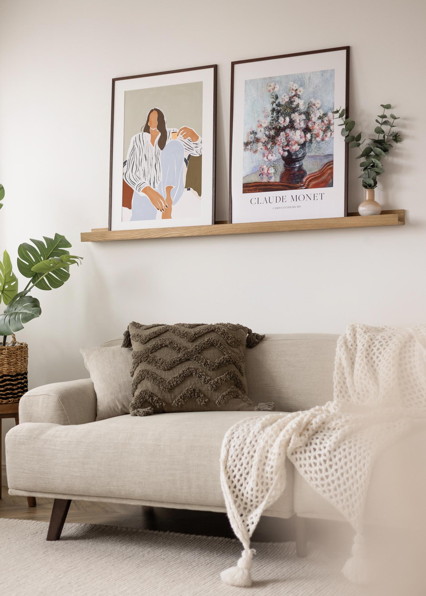 S praktickou poličkou na obrazy vystavíte svoje obrazy elegantným spôsobom a navyše získate vynikajúce možnosti, ako meniť svoje nástenné umenie. Táto polička na obrazy je vyrobená z masívneho duba a má čistý dizajn s jednoduchými, rovnými líniami. Samotná polička má vyfrézovanú drážku, ktorá poskytuje oporu pre vaše obrazy a zabezpečuje, že majú pekný uhol, keď sú naklonené oproti stene. Polička na obrazy je dostupná v niekoľkých rôznych dĺžkach, pričom táto varianta má dĺžku 140 cm. Polička na obrazy má tiež predvŕtané otvory, a aby to bolo všetko ešte o niečo jednoduchšie, súčasťou balenia sú aj vhodné skrutky a hmoždinky.