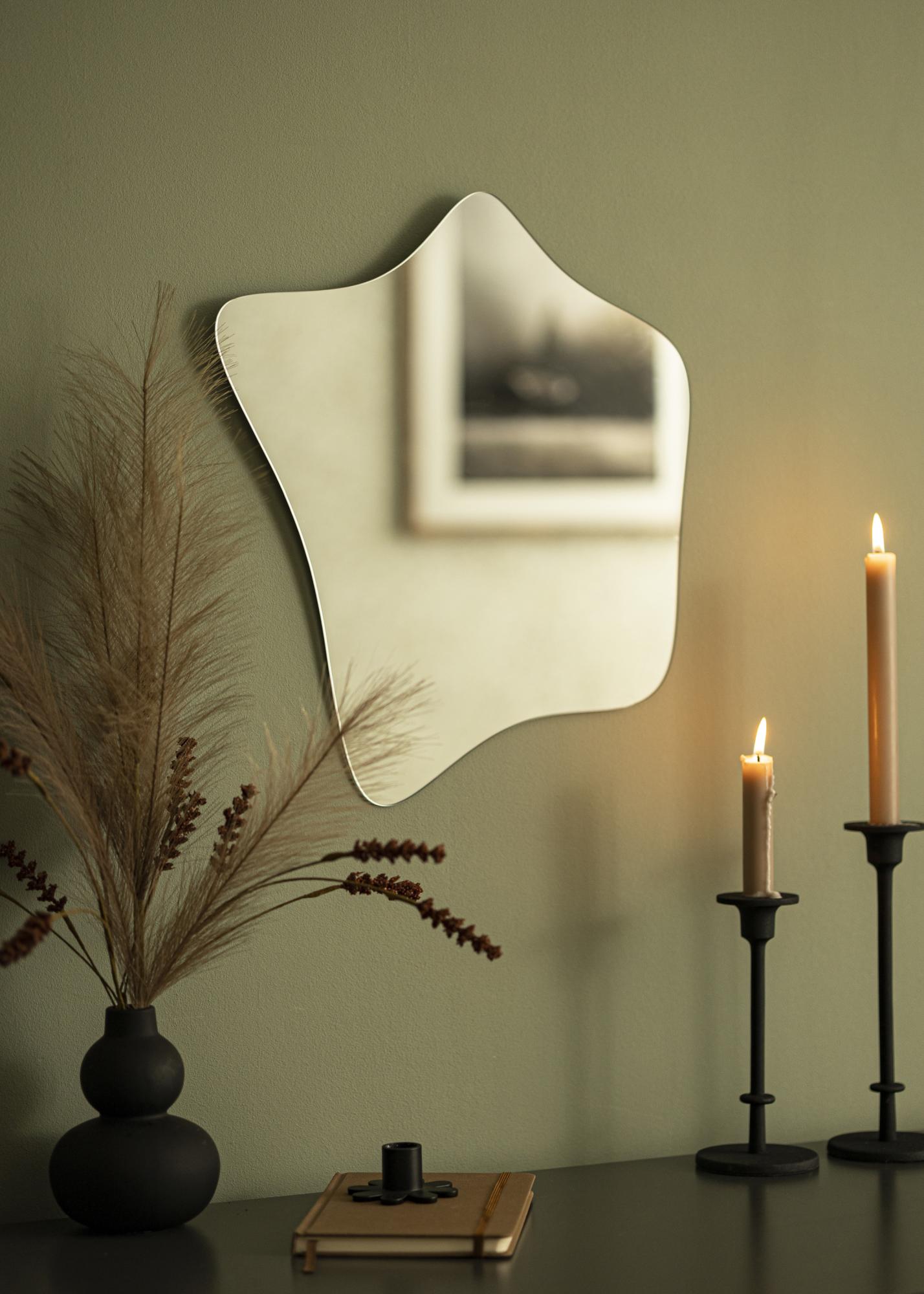 Moderný minimalizmus a tvar inšpirovaný prírodou – toto nástenné zrkadlo vám ponúka to najlepšie z oboch svetov! Unikátny tvar pripomína kvitnúce sasanky, zatiaľ čo bezrámový dizajn a 4 mm tenké zrkadlové sklo dodávajú zrkadlu elegantný a moderný vzhľad.