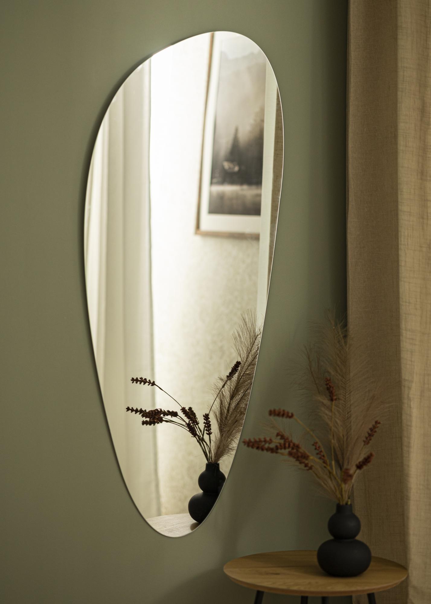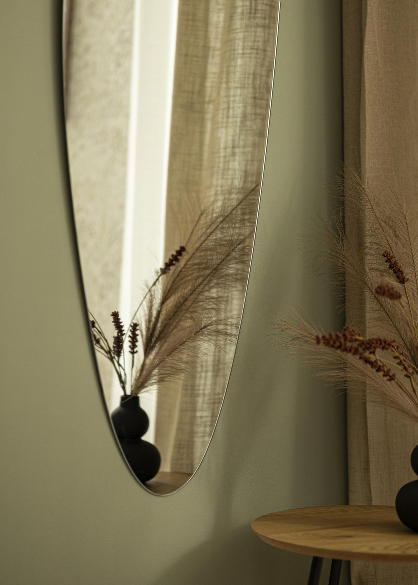 Toto nástenné zrkadlo je minimalizmus v tej najlepšej podobe – s dizajnom bez rámu a asymetrickým, podlhovastým tvarom. Tenkosť zrkadlového skla, iba 4 mm, ešte viac posilňuje elegantný minimalistický pocit.