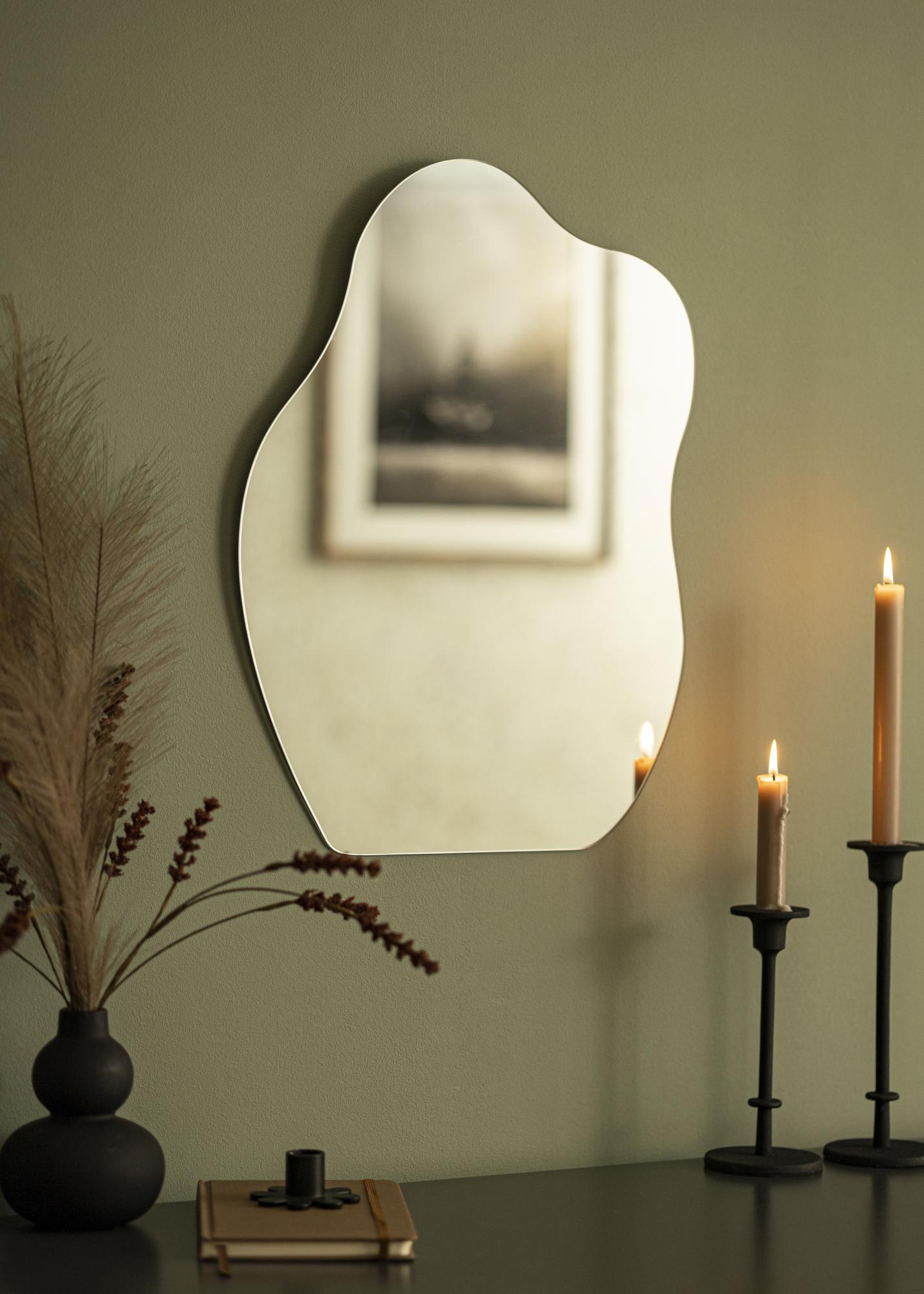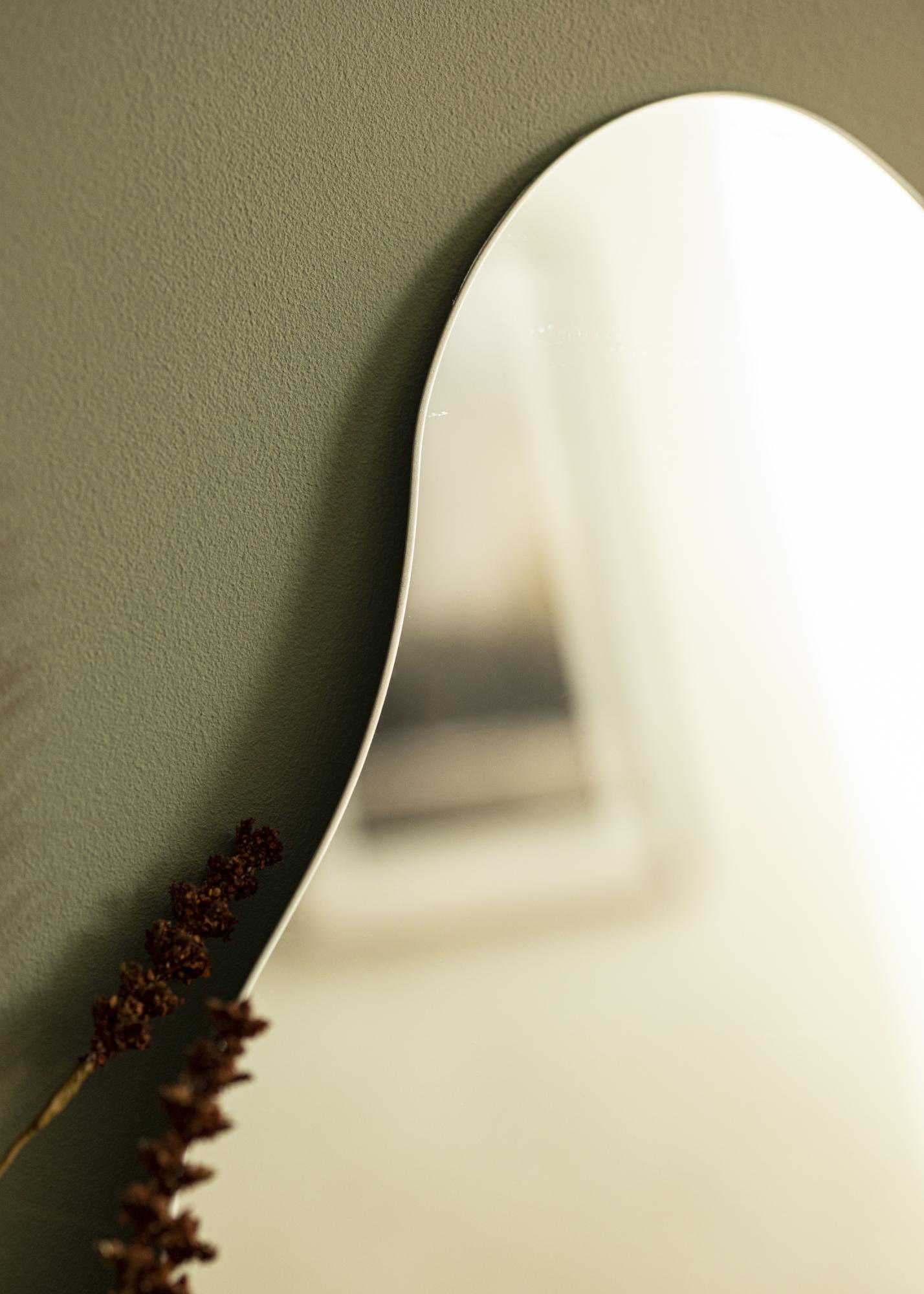 Tento nástenný zrkadlo ponúka eleganciu a hravosť s vlnitou formou, ktorá zrkadlu dodáva jeho jedinečný vzhľad. Spodná hrana je rovná, vďaka čomu zrkadlo dobre padne na nábytok opreté o stenu. Samozrejme, môžete zrkadlo nainštalovať aj na stenu!