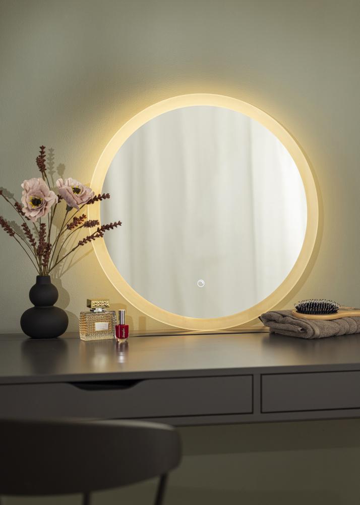 Zrkadlo s integrovaným osvetlením výrazne uľahčí vašu rannú rutinu! Tento variant má klasický okrúhly tvar a príjemné jemné svetlo v 3000K. Elegantné nástenné zrkadlo je ideálne do kúpeľne a vďaka svojej kompaktnej veľkosti, ktorá meria 60 cm v priemere, ho možno použiť aj v miestnostiach s obmedzeným priestorom.