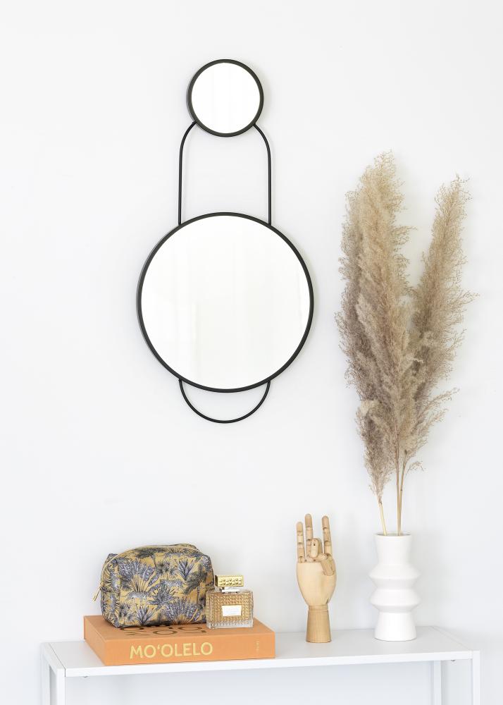 Toto je úžasné nástenné zrkadlo od KAILA s dvoma zrkadlami kombinovanými v jedinečnom a štýlovom dizajne. Nástenné zrkadlo má menšie zrkadlo hore a väčšie dole. Zrkadlo má rozmery 35x71 cm a je vyrobené z kovu. Zrkadlo je v elegantnom čiernom odtieni, čo mu dodáva veľmi trendový dizajn.