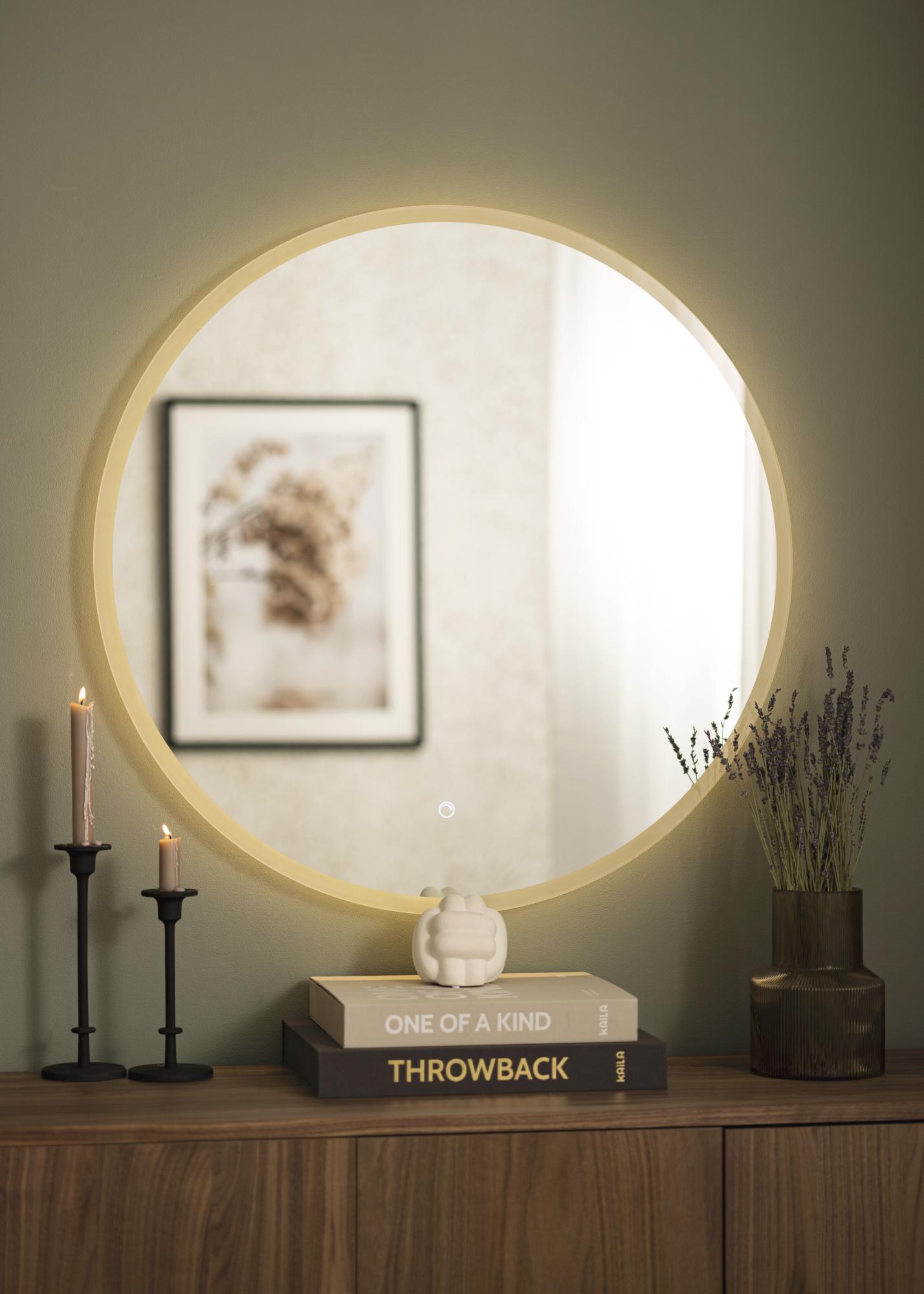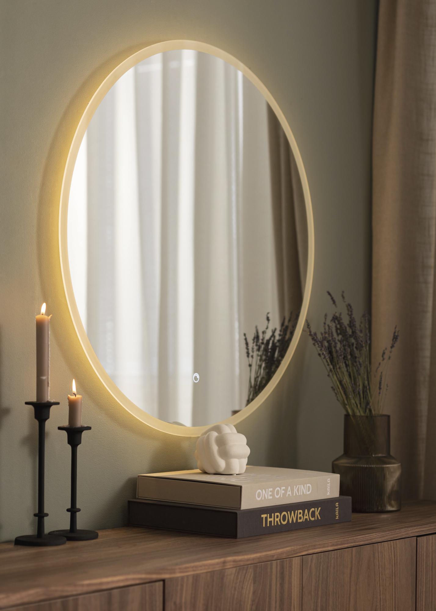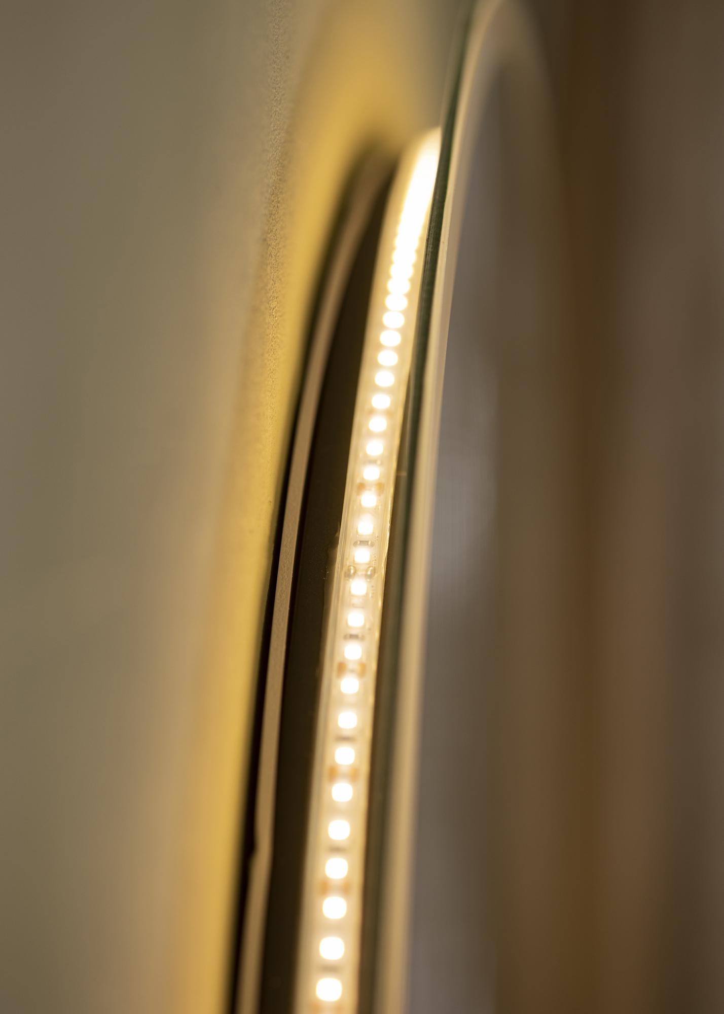Toto je klasické a štýlové okrúhle zrkadlo do kúpeľne. Zrkadlo má orámovanie z matného okraja s integrovaným LED osvetlením. Osvetlenie sa rozsvieti za zrkadlom a poskytuje príjemné teplé biele svetlo smerom dopredu v 3000K. Osvetlenie je stmievateľné a môžete jednoducho nastaviť intenzitu osvetlenia tým, že podržíte tlačidlo na niekoľko sekúnd. Pri ďalšom zapnutí osvetlenia si zrkadlo pamätá, na akú intenzitu svetla bolo nastavené. Zrkadlo má príslušné nástenné držiaky a je schválené pre kúpeľne. Kúpeľňové zrkadlo je určené na pevné pripojenie a musí byť pripojené k vypínaču. Aby zrkadlo fungovalo správne, malo by byť pripojené k bežnému vypínaču, nie k stmievaču.