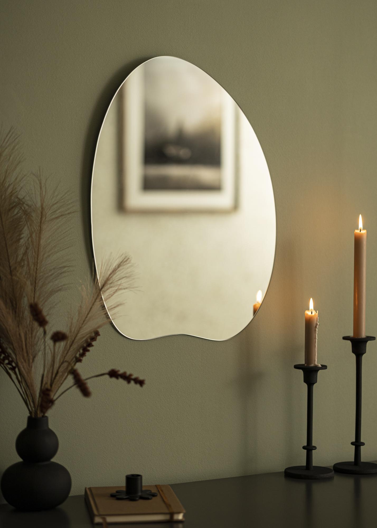 Ak hľadáte nástenné zrkadlo v zaujímavom tvare, toto je zrkadlo pre vás. Jedinečný dizajn, so zaobleným tvarom a jemne zvlneným spodným okrajom, je dokonale kombinovaný s tenkým zrkadlovým sklom o hrúbke 4 mm. Zrkadlo nemá žiadny rám, čo mu dodáva minimalistický vzhľad. Vďaka inteligentným stenovým úchytom na zadnej strane môžete zrkadlo jednoducho zavesiť na stenu vo zvislej polohe.