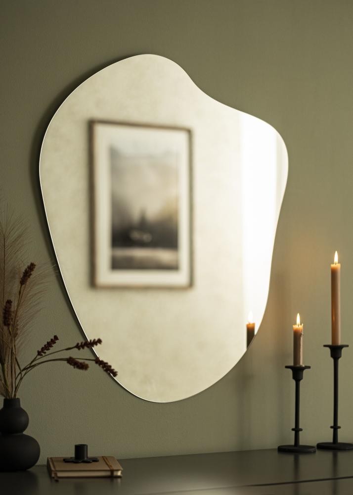 Nechajte tento trendový nástenný zrkadlo stať sa pútavým interiérovým prvkom, ktorý krásne odráža svetlo z okien a svietidiel. Jedinečný tvar a absencia rámu dávajú zrkadlu jeho charakteristický vzhľad, ktorý je moderný aj minimalistický.