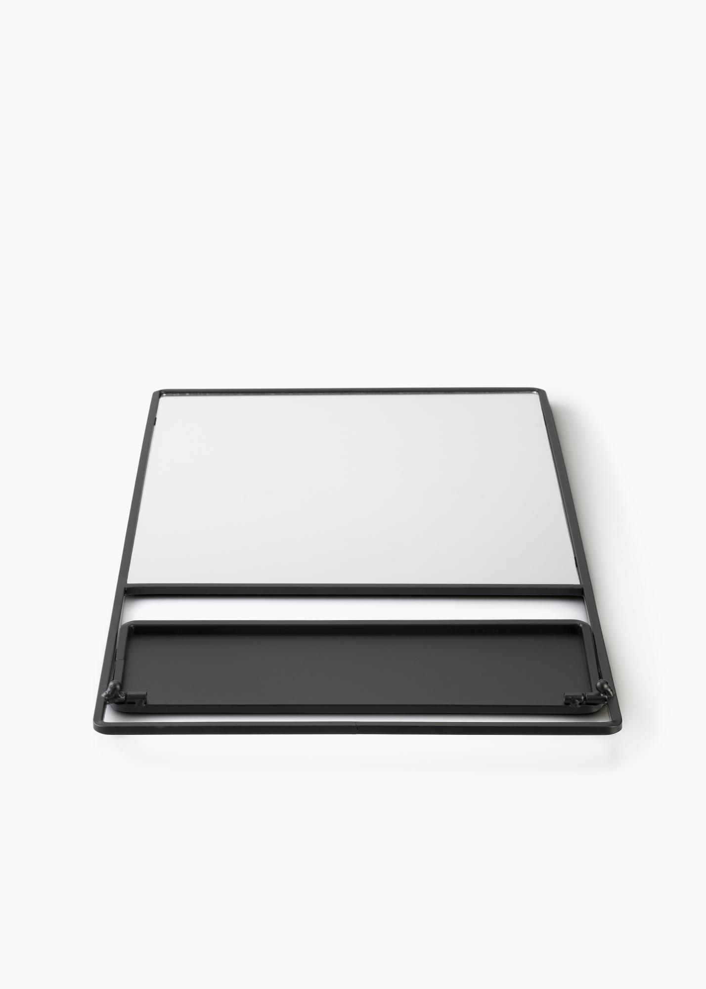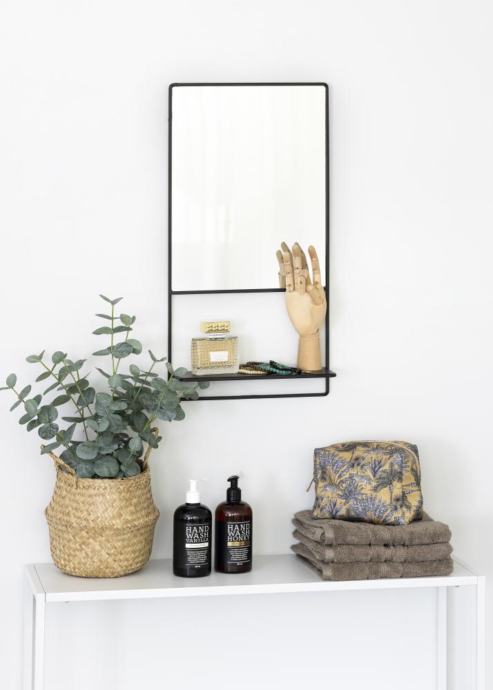 Tento štýlový nástenný zrkadlo s poličkou je švédsky dizajn od KAILA. Zrkadlo je v čiernom odtieni a je vyrobené z kovu. Samotná zrkadlová plocha má obdĺžnikový tvar a je orámovaná čiernym kovovým okrajom. Na spodnej strane je polička - ideálna na umiestnenie pekných dekorácií alebo na úložisko na líčenie! Zrkadlo meria 31x60 cm a má nástenný úchyt.