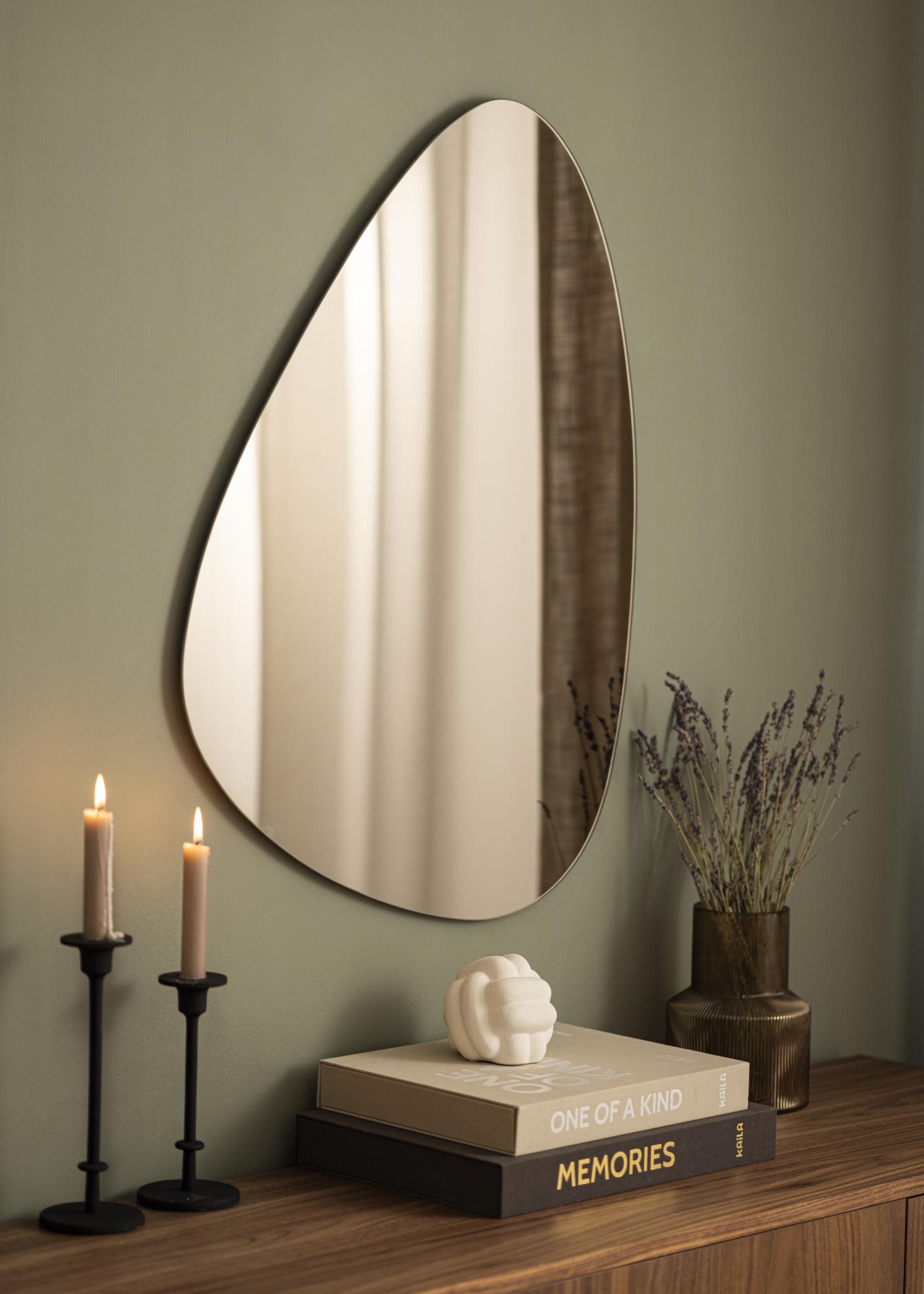 Tento asymetrický zrkadlo sa stane naozaj štýlovým a trendovým doplnkom vo vašom domove! Okrem zaujímavého dizajnu vajcovitého tvaru má toto zrkadlo aj štýlové bronzové tónované zrkadlové sklo, ktoré ďalej posilňuje moderný vzhľad a krásne harmonizuje s rôznymi farebnými schémami. Mäkký tvar v kombinácii s tým, že zrkadlo je veľmi tenké a nemá rám, poskytuje zrkadlu zriedkavo elegantný a štíhly pocit. Perfektné ako funkčná a trendová nástenná dekorácia v obývačke, hale alebo spálni.
