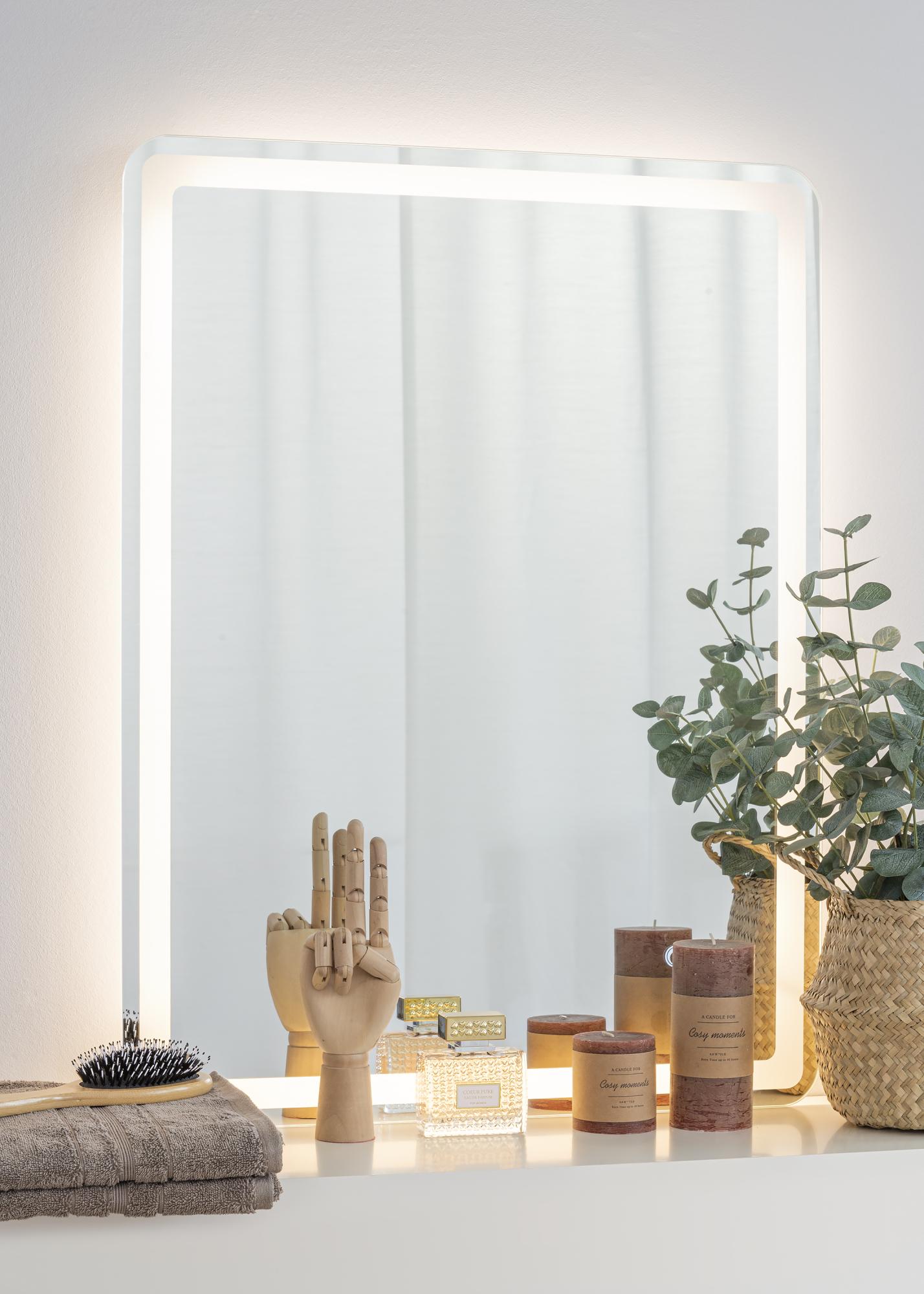 Toto je elegantné kúpeľňové zrkadlo od švédskej značky KAILA. Zrkadlo má jemnejšie hrany a vo vnútri sa nachádza integrované LED osvetlenie, ktoré štýlovo rámuje zrkadlové sklo. Integrované LED osvetlenie je stmievateľné a poskytuje prirodzené teplé biele svetlo pri 3000K. Osvetlenie sa jednoducho nastavuje tak, že držíte prst na dotykovom tlačidle niekoľko sekúnd, aby sa svetlo stlmilo na požadovanú úroveň. Zrkadlo si zapamätá posledné nastavenie osvetlenia, keď ho nabudúce zapnete.