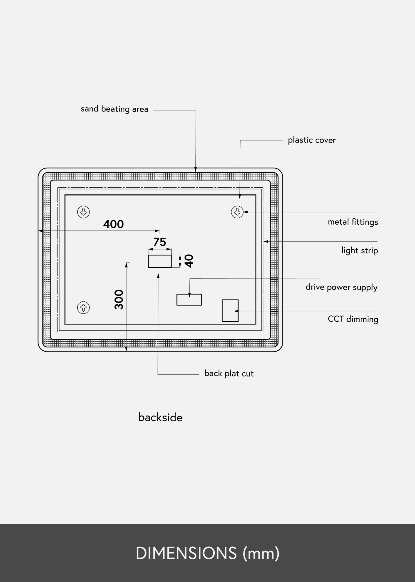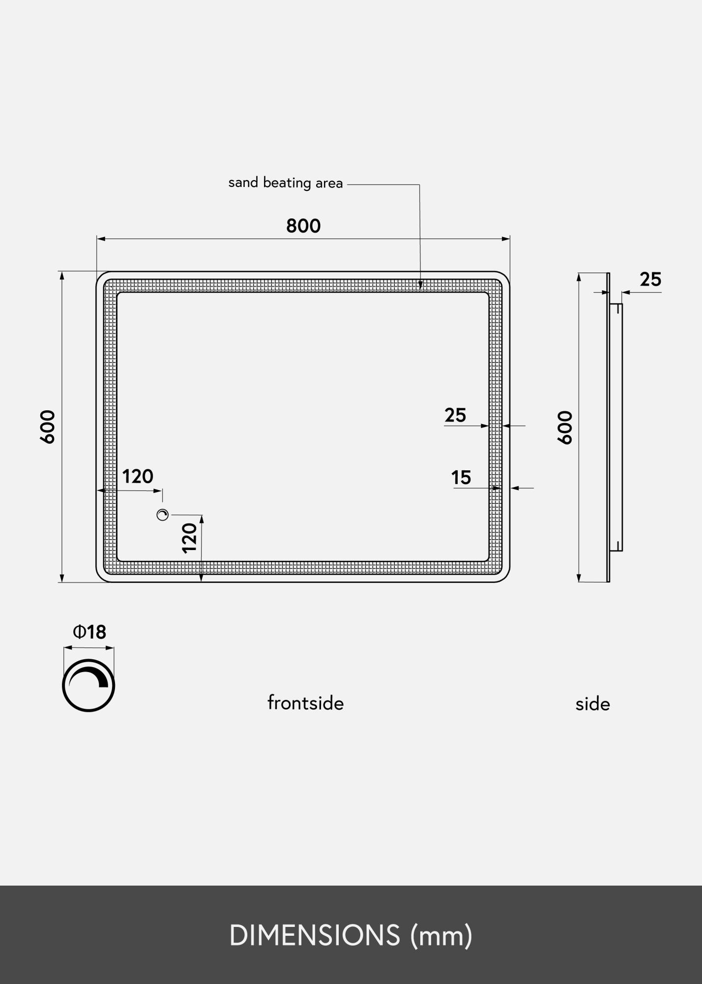 Zrkadlo meria 60x80 cm a s priloženými nástennými držiakmi ho môžete umiestniť horizontálne aj vertikálne. Zrkadlo je schválené pre kúpeľne. Kúpeľňové zrkadlo je určené na pevnú inštaláciu a pripája sa k vypínaču. Aby zrkadlo správne fungovalo, malo by sa pripojiť k bežnému vypínaču, nie k stmievaciemu vypínaču.