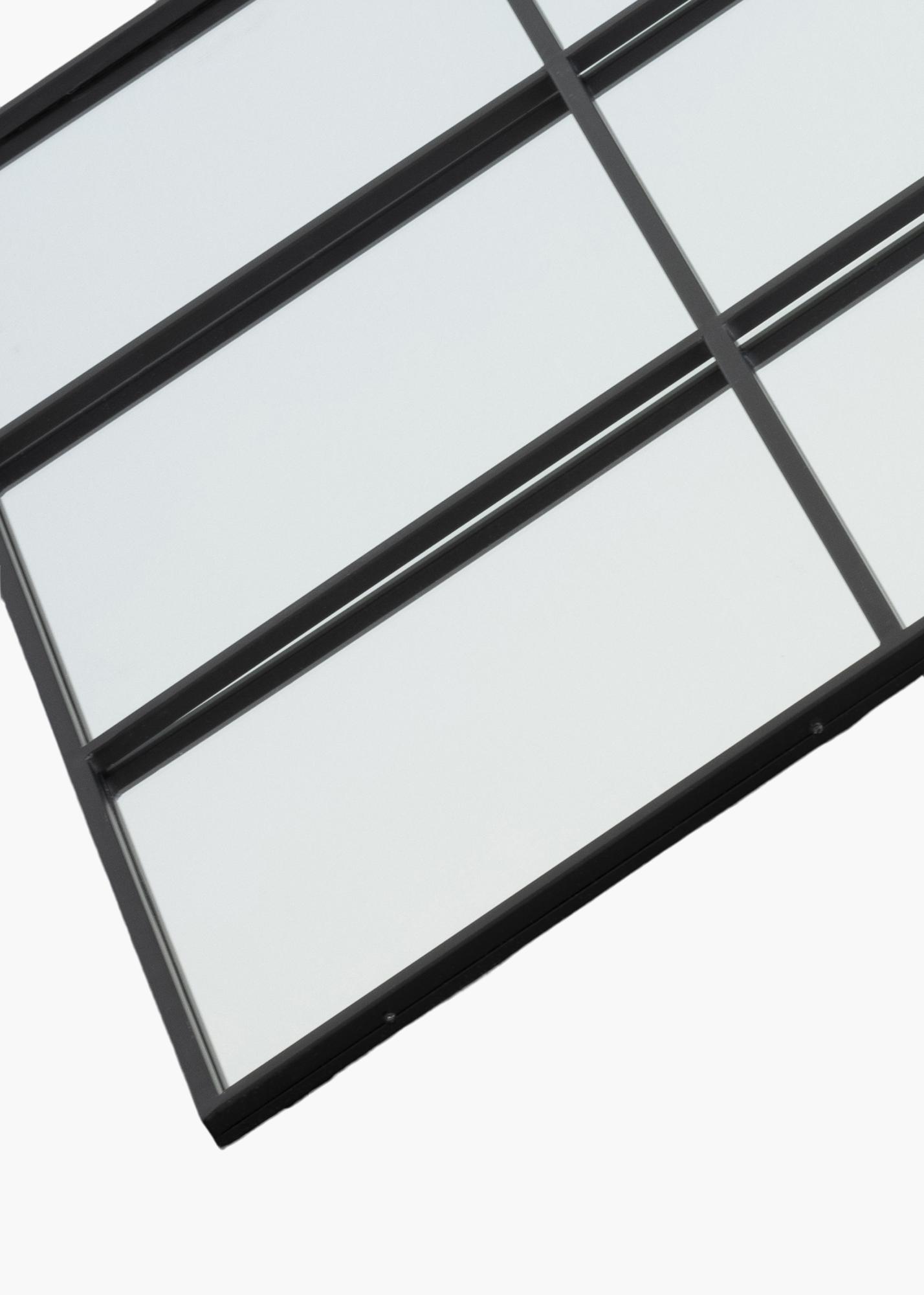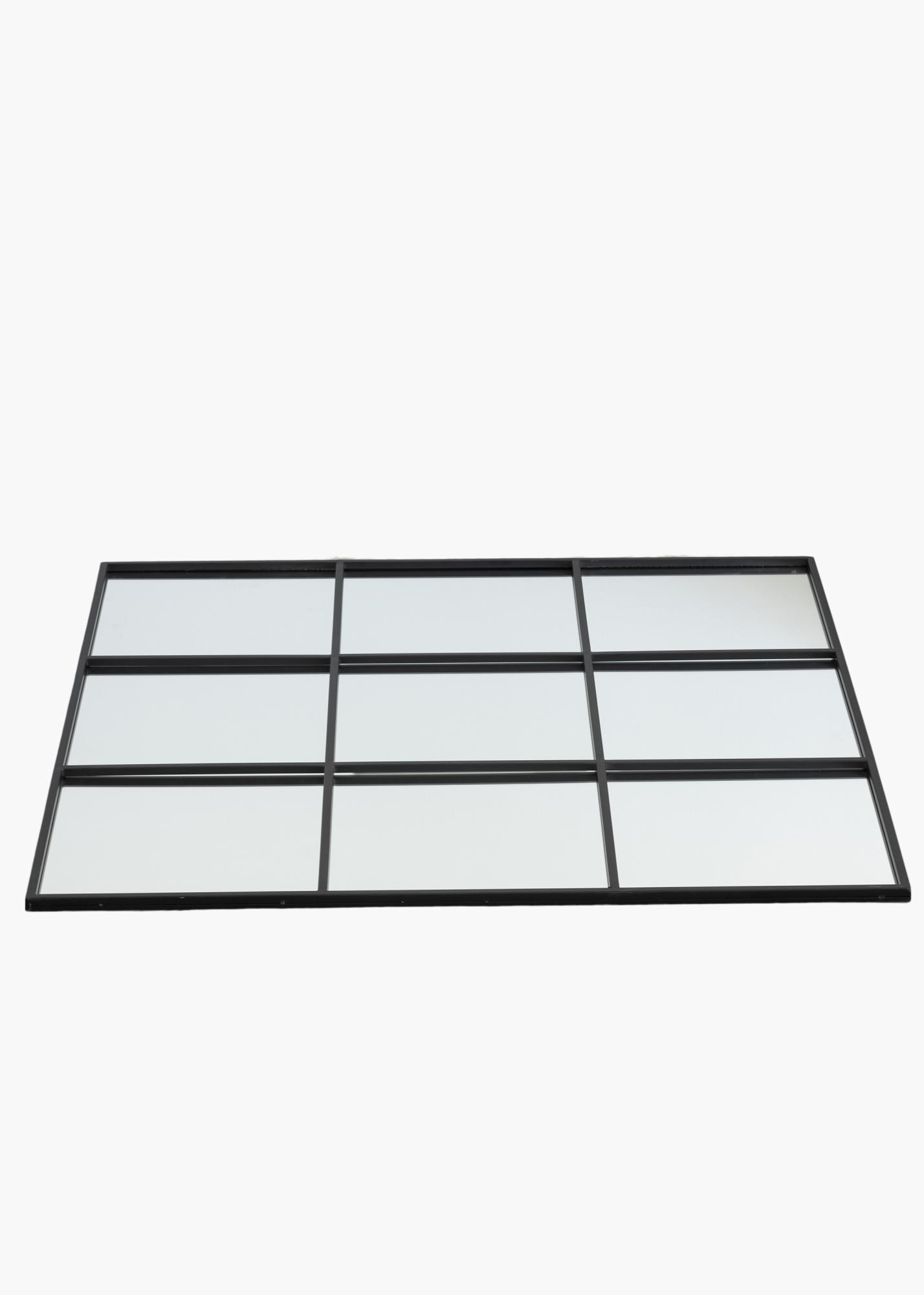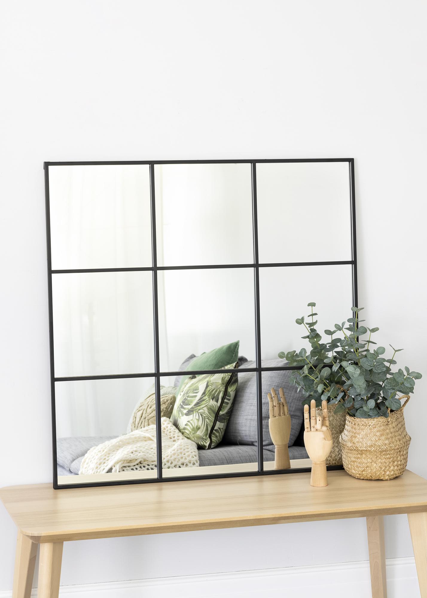 Toto je zrkadlo v kvadratickom tvare so štýlovým mriežkovým vzorom. Štvorce sú štýlovo orámované tenkými čiernymi kovovými líniami, ktoré tomuto nástennému zrkadlu dodávajú rustikálny a industriálny charakter. Štvorcový tvar dáva zrkadlu čistejší vzhľad. Umiestnite toto zrkadlo napríklad do chodby, kuchyne alebo spálne, aby ste vytvorili viac priestoru v miestnosti a zároveň získali dekoratívny interiérový prvok. Držiak na stenu je k dispozícii. Zrkadlo meria 90x90 cm.