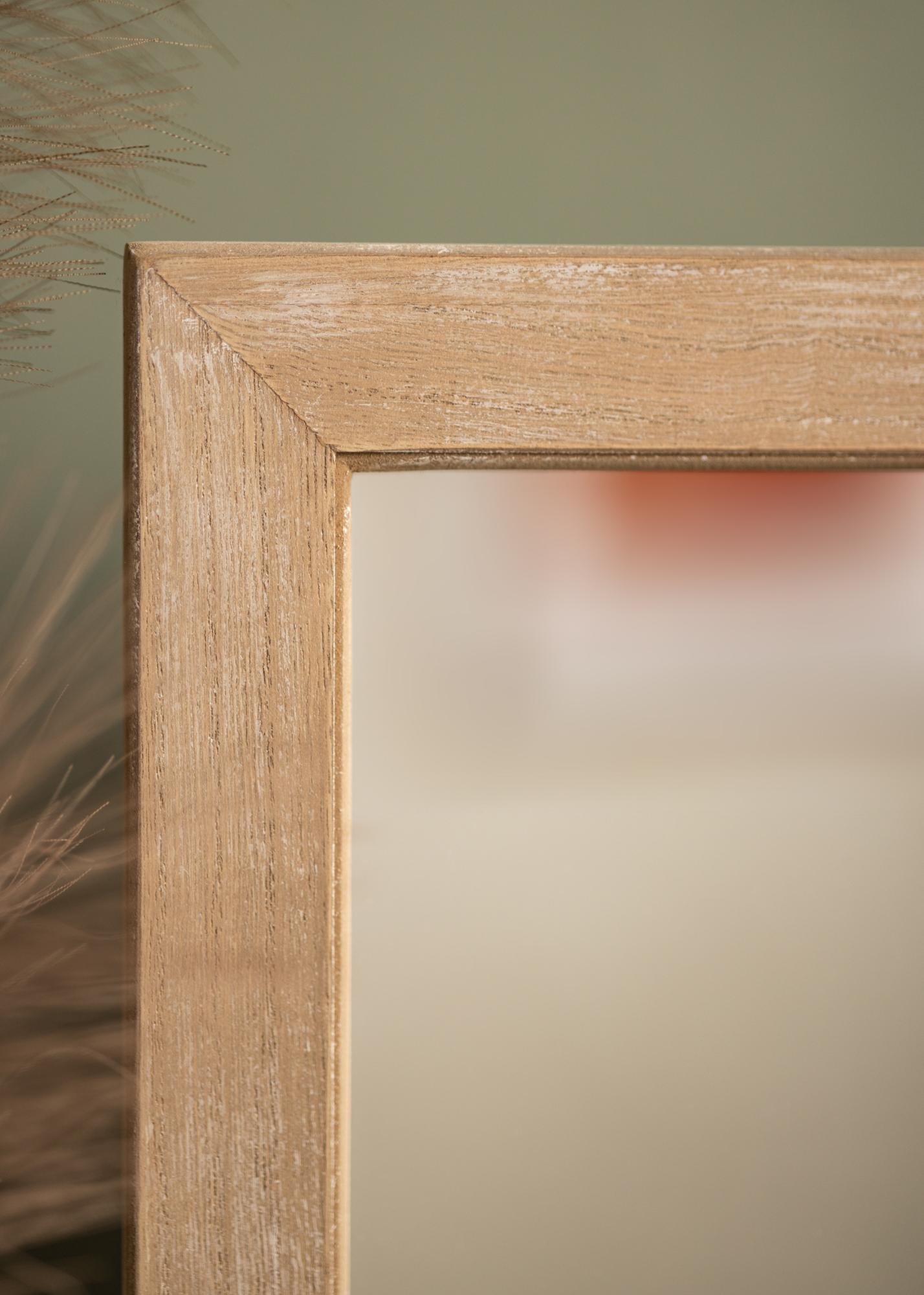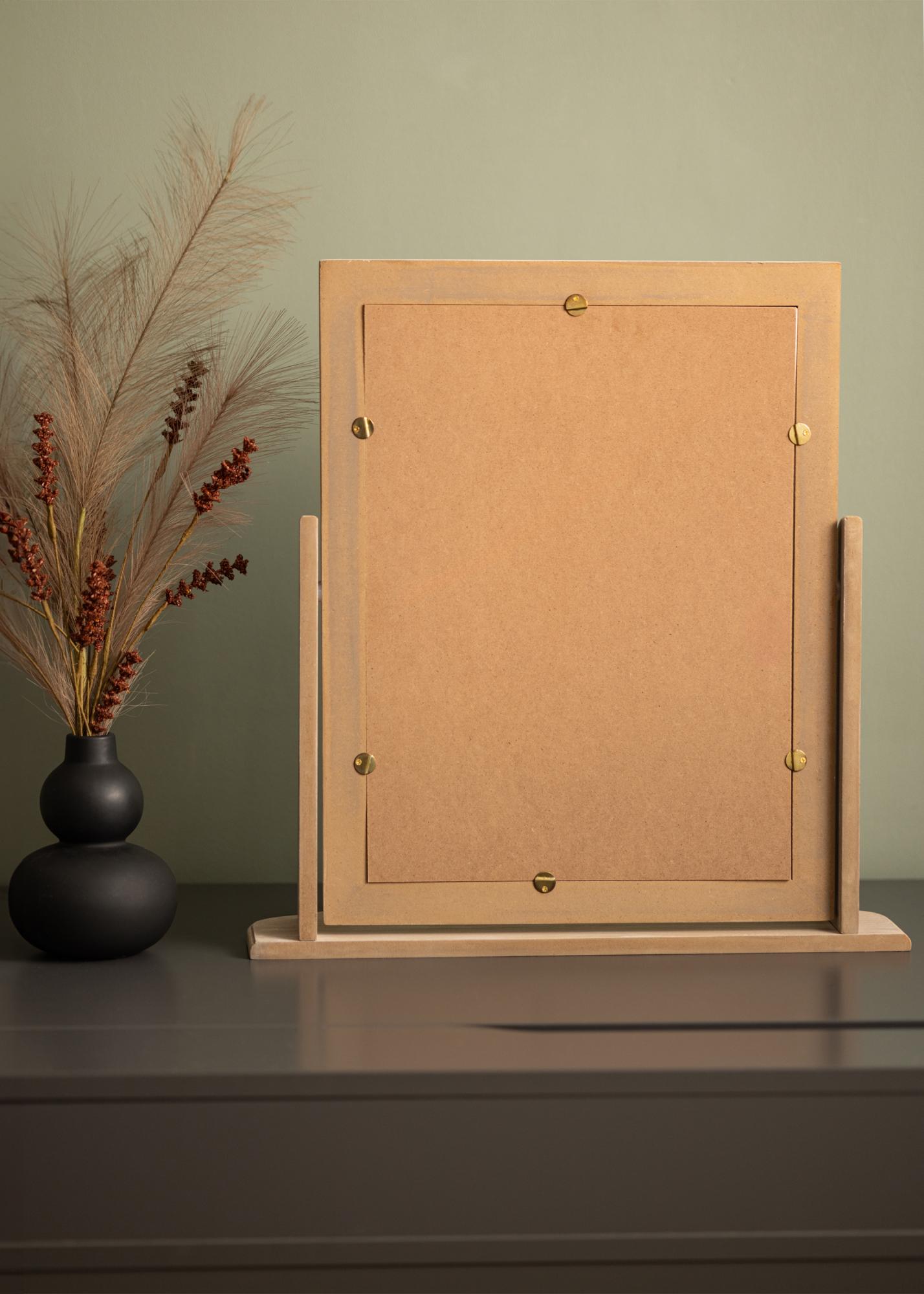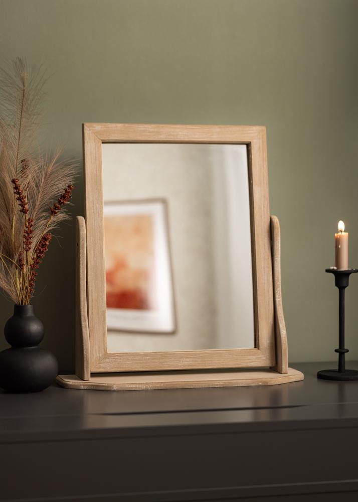 Zrkadlo pevne stojí na robustnej nohe, navrhnutej na umiestnenie na toaletný stolík alebo komodu. Obdĺžnikový tvar je klasický a dodáva miestnosti jemný nádych, pričom čistý odraz zabezpečuje, že sa uvidíte v tom najlepšom svetle.