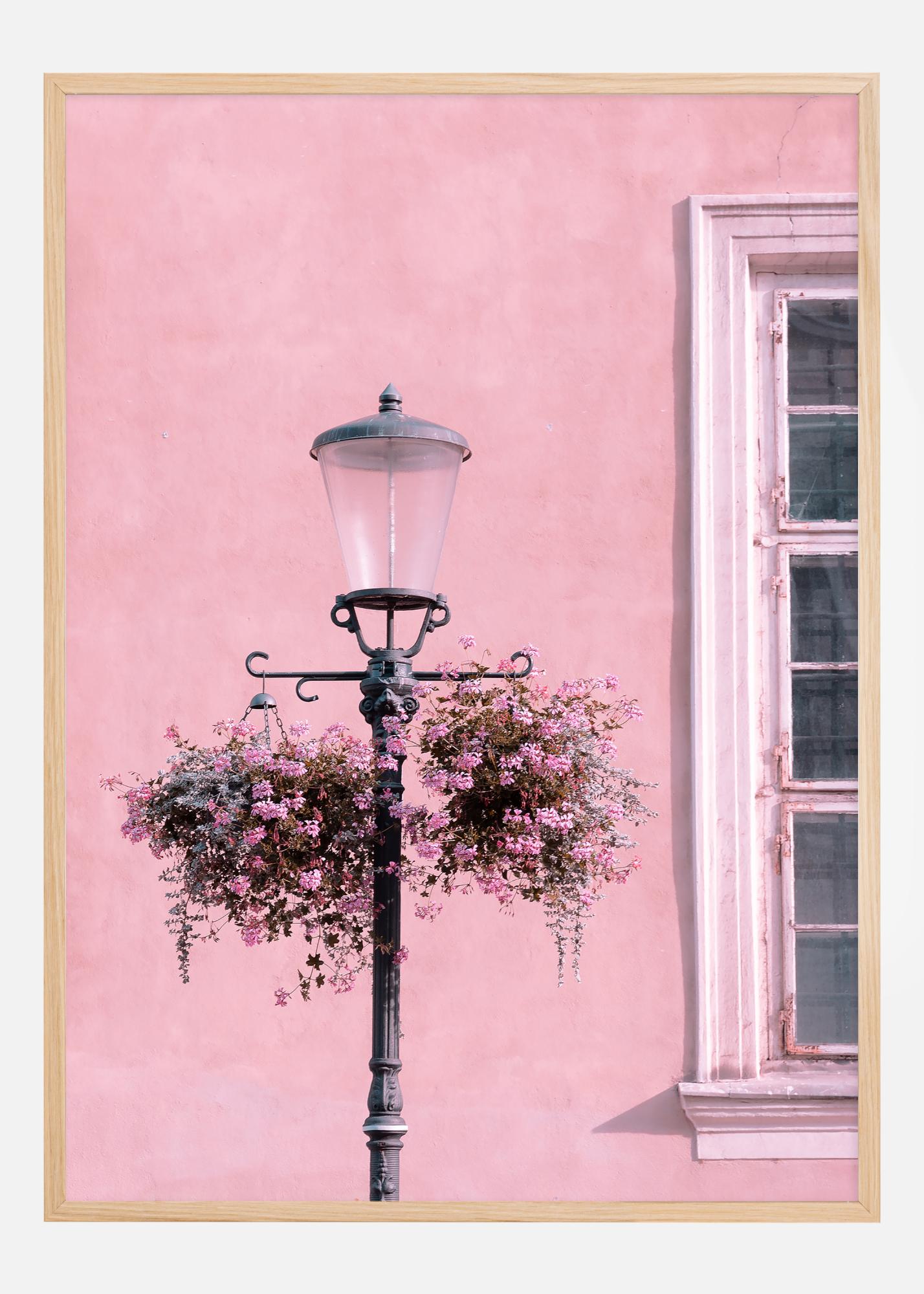Tento romantický plagát zobrazuje klasickú lampu ozdobenú kvitnúcimi kvetináčmi na stenovom pozadí v pastelovej ružovej farbe. Je to obraz, ktorý vyvoláva myšlienky na idylické mestské ulice a jednoduché krásy každodenného života. Perfektné pre tých, ktorí si chcú priniesť kúsok čarovného mestského centra do svojho vlastného domova. Tento print rozjasní akékoľvek miesto svojím jemným šarmom a vintage pocitom.