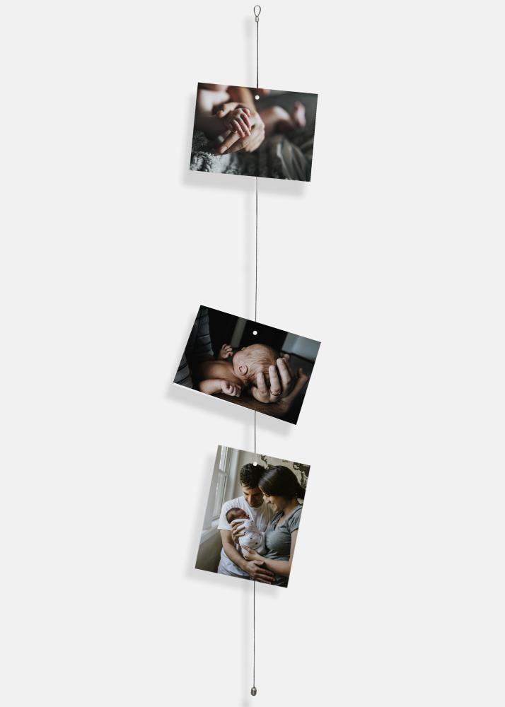 Fotolano z kovu s dĺžkou 150 cm, na ktoré pripevníte svoje obrázky s 10 ks silných fotomagnetov, ktoré sú súčasťou balenia. Perfektné, keď chcete mať iný spôsob, ako zobraziť svoje obľúbené fotografie.