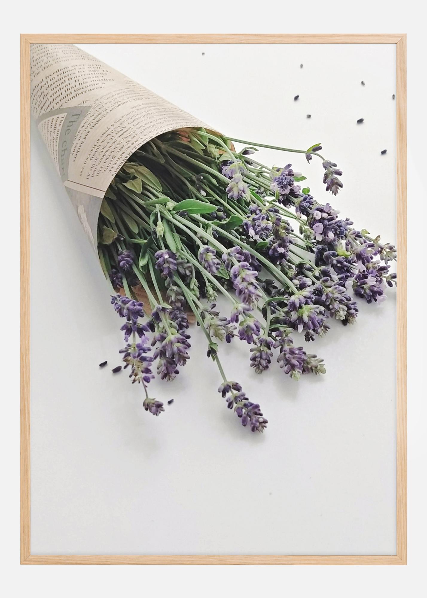 Tento očarujúci a vidiecky plagát zachytáva podstatu francúzskej provinčnej estetiky s kyticou levandule, ktorej vôňu možno cítiť takmer cez obrázok. Fialové kvety ležia krásne na bielom pozadí a sú elegantne zabalené v papieri s textom, čo dodáva vintage pocit a pripomína skoré ráno na kvetinovom trhu. Tento motív je dokonalý na vytvorenie pocitu pokoja a prírodnej krásy v akejkoľvek miestnosti, ako aj na pridanie romantického nádychu do interiéru.