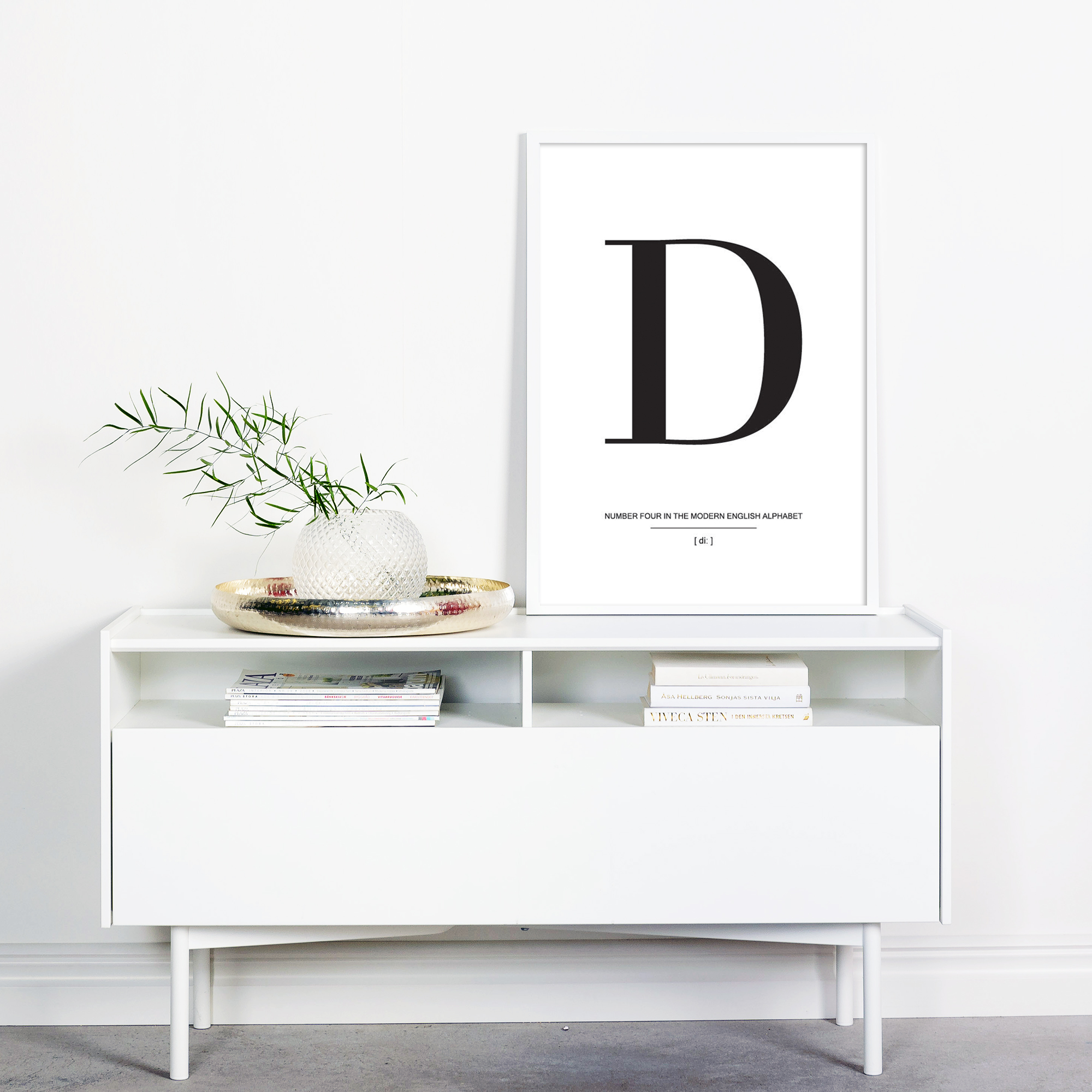 V jednoduchosti je krása a to naozaj dokazuje tento štýlový poster s písmenom D v čiernej farbe na bielom pozadí. Plagát má peknú typografiu a mal by byť doplnený ďalšími plagátmi s písmenami z rovnakej série, aby sa vytvorila trendová a krásna galéria na stene. Vyberte svoje obľúbené plagáty s písmenami a vyberte si z nášho širokého sortimentu kvalitných rámov, potom už stačí nechať fantázii voľný priechod na stenách vášho domova.