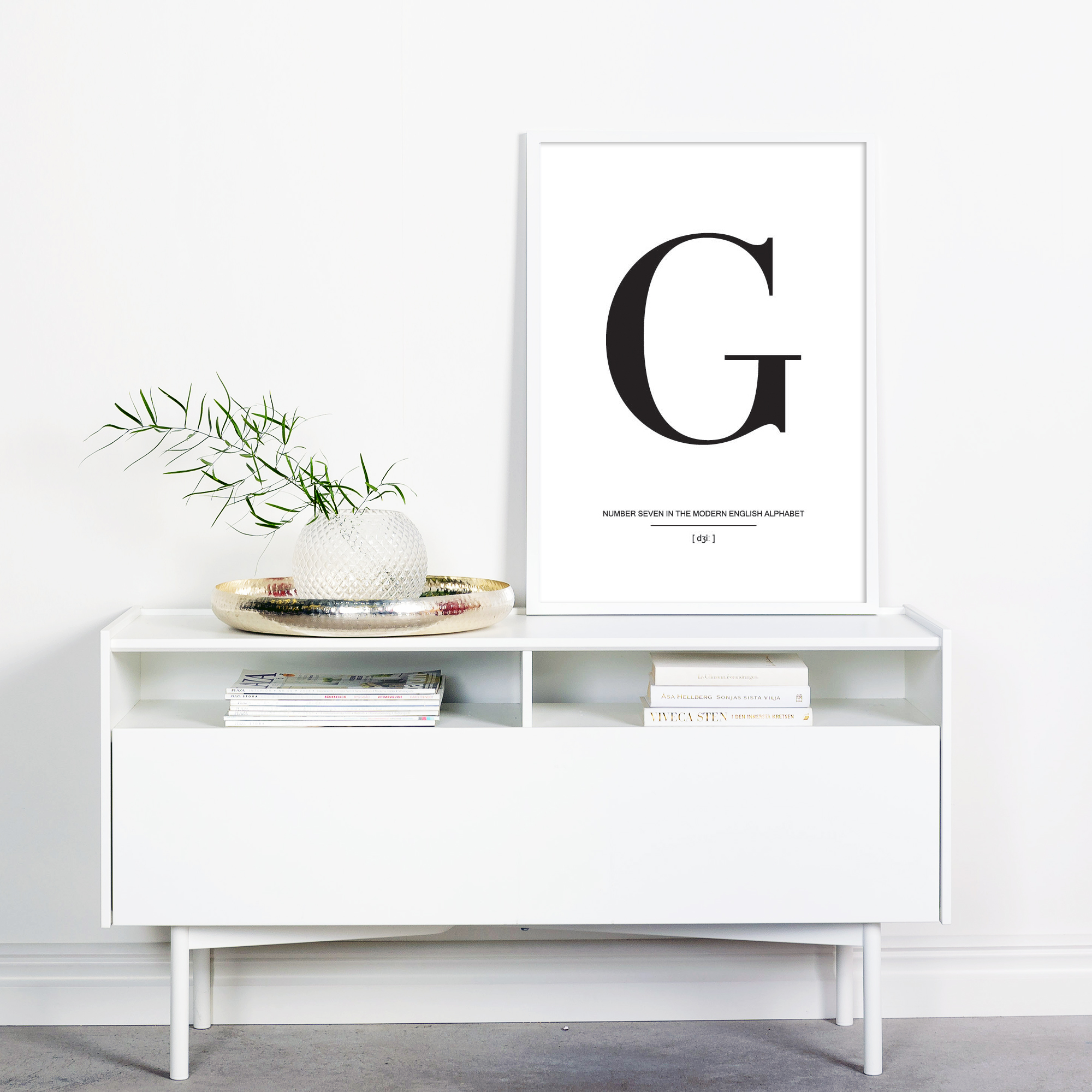V jednoduchosti je krása a to skutočne dokazuje tento štýlový plagát s písmenom G v čiernej farbe na bielom pozadí. Plagát má peknú typografiu a mal by byť doplnený inými plagátmi s písmenami z tej istej série, aby ste vytvorili trendovú a krásnu stenu s obrazmi. Vyberte si svoje obľúbené plagáty s písmenami a vyberte si z našej širokej ponuky kvalitných rámov, potom stačí len nechať plynúť fantáziu doma na stenách.