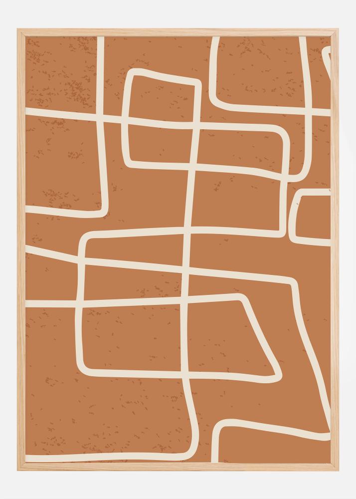 Umelecké dielo dýcha súčasnou eleganciou a dá sa interpretovať ako všetko od pouličnej siete mesta po umelecké zobrazenie digitálnych kódov alebo architektonických plánov. Terakotové a béžové tóny na plagáte nie sú len trendové, ale aj neuveriteľne všestranné, čo umožňuje, aby sa dielo jednoducho zladilo s inými dekoráciami alebo farebnými schémami. Tento plagát ponúka diskrétny, ale zároveň výrazný akcent pre akúkoľvek miestnosť a jeho grafická jednoduchosť prináša skrytú zložitosť, ktorá zaujme a inšpiruje.