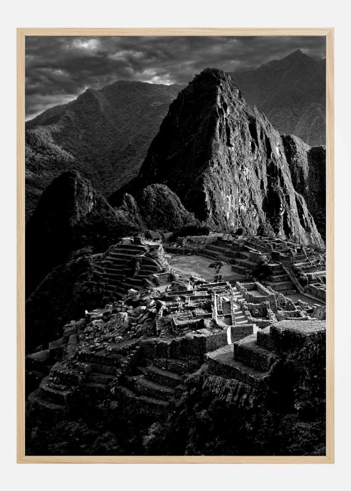 Fascinujúca čiernobiela tlač strateného mesta Inkov. Veľkolepý pohľad na zrúcaniny vás prenesie späť v čase. Čiernobiely horizont zosilňuje prirodzené svetlo, ktoré ožaruje stred obrazu. Zaveste tento magický a mystický plagát vo vašom štúdiu a vrátite sa o krok späť v čase.