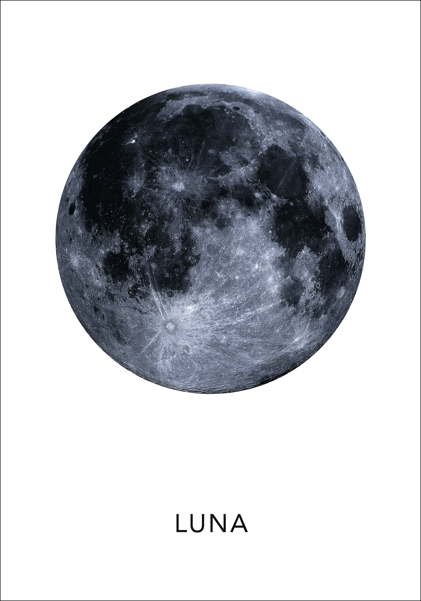 Pozrite sa okolo seba na svet a uvidíte, že tie najkrajšie umelecké diela sú tu prirodzene pre vás, aby ste si ich mohli vychutnať. Tu máme nádherný mesiac vytlačený spolu s jeho latinským názvom Luna.