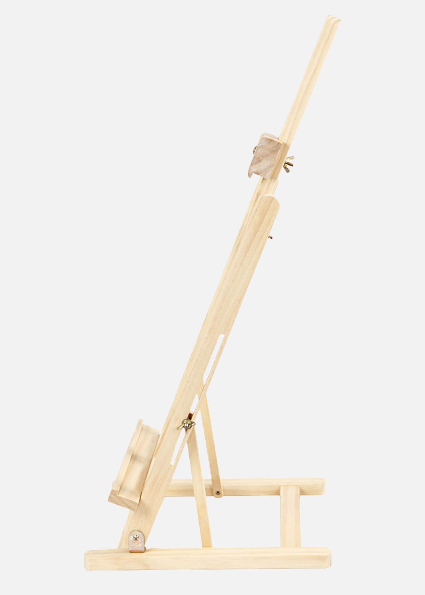 Stojan je vyrobený z dreva a má nastaviteľný držiak, ktorý umožňuje jednoducho prispôsobiť uhol podľa vašich potrieb. Ideálne pre maľovanie, vystavovanie umeleckých diel alebo ako elegantné prezentačné riešenie pre fotografie a obrazy.