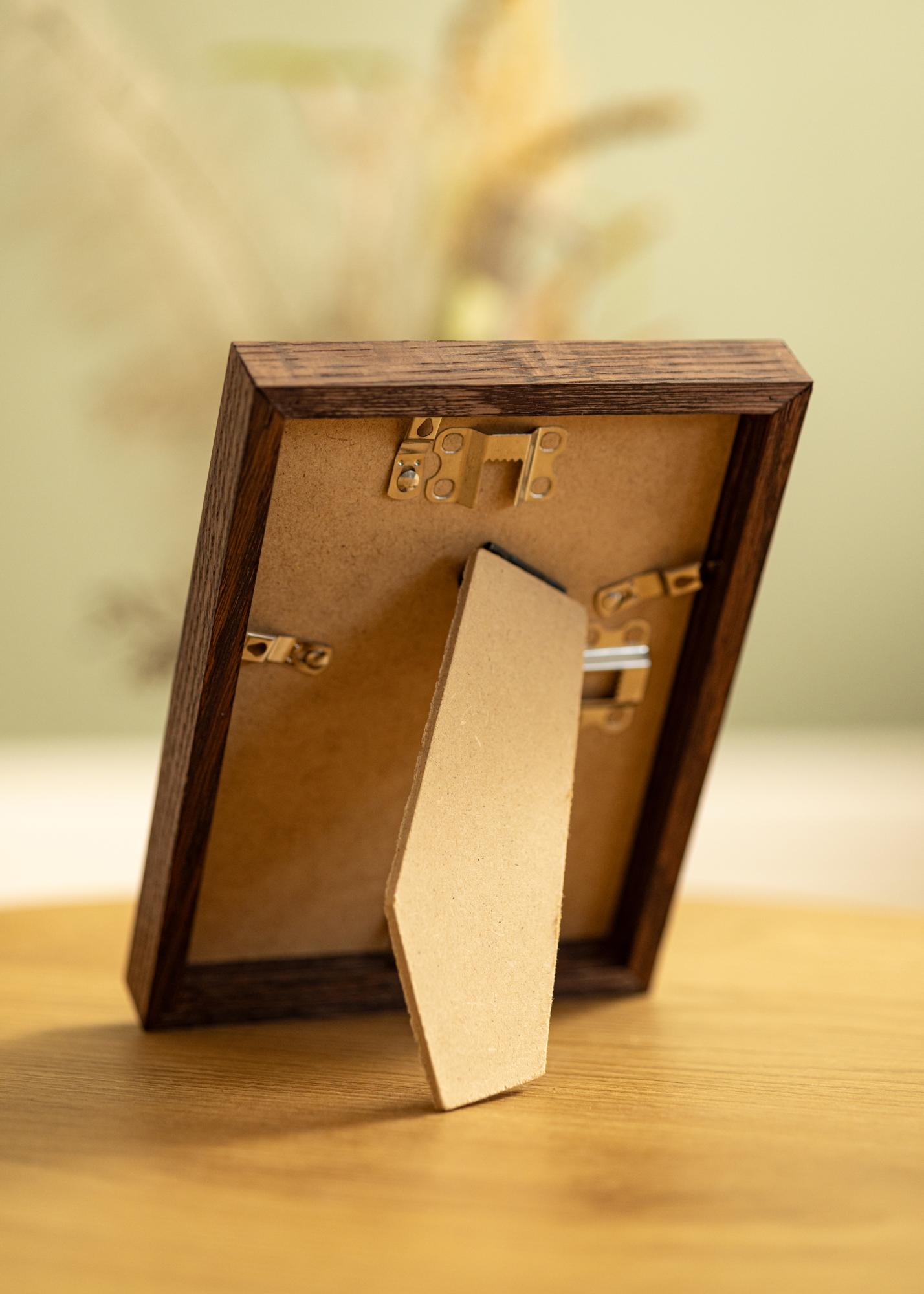 Táto elegantný rám v tmavom dubu je perfektná na zvýraznenie vašich obľúbených motívov. S rozmermi 18x24 cm je ideálna na to, aby vašim obrázkom dodala štýlový rám. Teplá, tmavohnedá drevená štruktúra s jasnou kresbou dodáva autentický pocit dreva a prináša rustikálne čaro do moderných aj vidieckych interiérov.